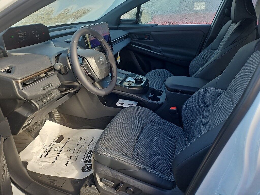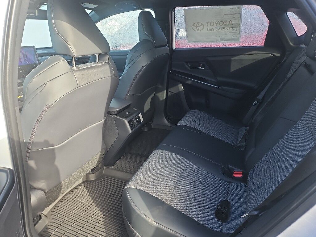All Weather Floor Liners/all Weather Cargo,Mudguard,Apple CarPlay/Android Auto smart device wireless mirroring,Lane Tracing Assist (LTA) hands-on cruise control,Pre-Collision System with Pedestrian Detection,Automatic curve slowdown cruise control,Emergency Driving Stop System unresponsive driver assist,Wi-Fi Connect with 30-day or up to 3GB trial subscription mobile hotspot internet access,Rear mounted camera,Lane Departure Alert (LDA) w/Steering Assist,Rear Cross-Traffic Braking (RCTB) collision mitigation,Full-Speed Range Dynamic Radar Cruise Control (DRCC),Pre-Collision System w/Brake Assist predictive brake assist system,Cruise control with steering wheel mounted controls,Power liftgate rear cargo door,Drive Connect (3 year trial) includes Cloud Navigation with real time traffic and Google POI integrated navigation system with voice activation,Heated steering wheel,Heated driver and front passenger seats,Primary monitor touchscreen,Driver seat power reclining, lumbar support, cushion tilt, fore/aft control and height adjustable control,Full-time AWD,Electric,Electric,Qi-compatible Wireless Charging front wireless smart device charging,Intelligent Assistant built-in virtual assistant,Toyota Safety Sense (TSS) 3.0 forward collision mitigation with left turn assist,Driver attention alert with active monitoring,Road Sign Assist (RSA),Evasion assist system,Front cross traffic warning,Smart Key with hands-free access and push button start,Push-button,NACS (J3400) DC fast charge connector,Automatic brake hold,Plug and charge,Bluetooth wireless audio streaming,Remote Connect (3 year trial) remote-activated interior climate preconditioning,Remote Connect Digital Key (3 year trial) smart device-as-key proximity door locks,Proximity cargo area access release,Blind Spot Monitor (BSM),Following distance alert,Safe Exit Alert (SEA) external exit warning system,Dual-zone front climate control,Heat pump,Full gauge cluster screen,Automatic High Beams (AHB) auto high-beam headlights,150.000 kW,Immobilizer,Safety Connect (10-year trial) vehicle tracker,Selectable Terrain Modes,Safety Connect (10-year trial) vehicle integrated emergency SOS system,Bluetooth handsfree wireless device connectivity