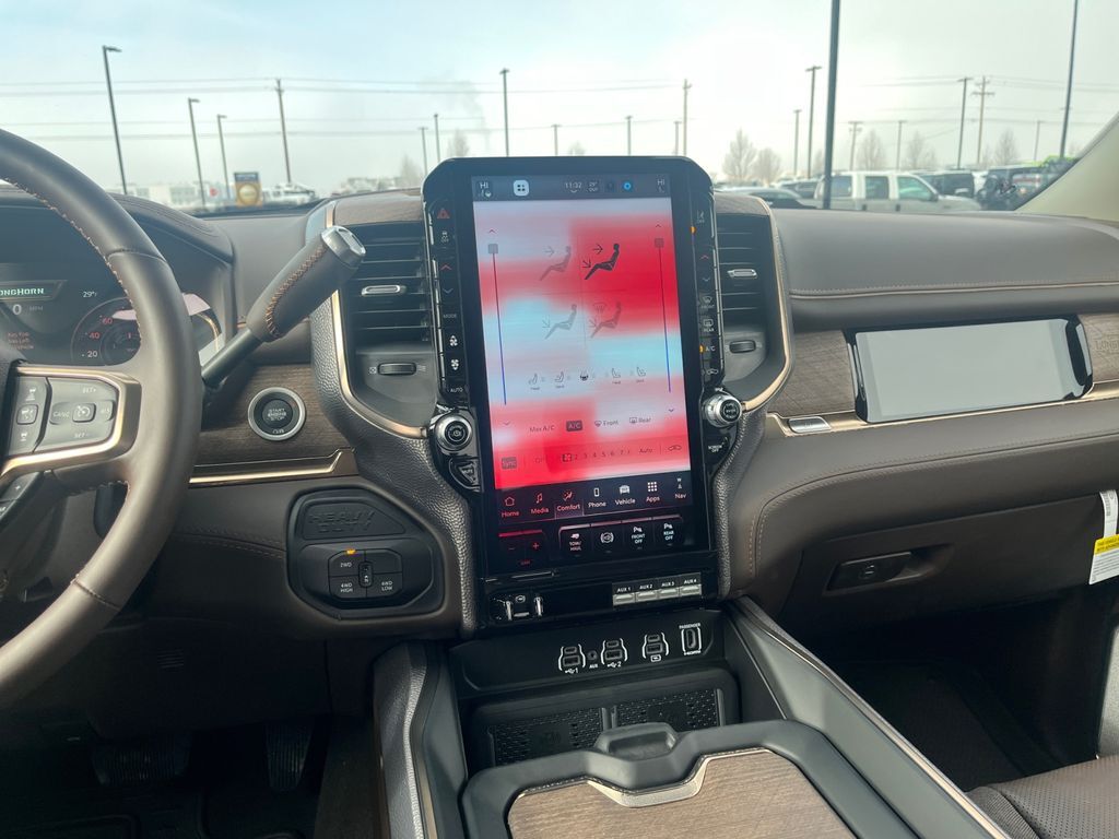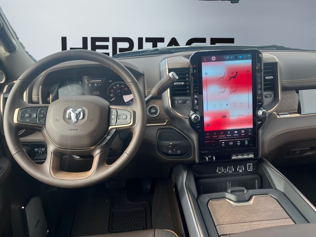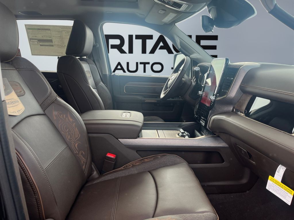 Limited Level 1 Equipment Group: Active Lane Management System; MOPAR Spray in Bedliner; Center Stop Lamp with Cargo View Camera; Surround View Camera System; Drowsy Driver Detection; LED Bed Lighting; Power Deployable Running Boards; Traffic Sign Recognition; Trailer Tire Pressure Monitoring System; Trailer Reverse Guidance; Digital Rearview Mirror; Adaptive Steering System,Quick Order Package 24K Longhorn: Luxury Front and Rear Floor Mats; Warm Chrome Key Fob; Longhorn Instrument Cluster Theme 3; Premium Door Trim Panel; Premium Filigree Leather Seats; I/P Aluminum Litho Bezels with Real Wood #1; Longhorn Badge,Quick Order Package 2UK Longhorn: Luxury Front and Rear Floor Mats; Warm Chrome Key Fob; Longhorn Instrument Cluster Theme 3; Premium Door Trim Panel; Premium Filigree Leather Seats; I/P Aluminum Litho Bezels with Real Wood #1; Longhorn Badge,Dual Rear Wheels: Clearance Lamps; LT235/80R17E BSW All Season Tires; 17" Steel Spare Wheel; Box and Rear Fender Clearance Lamps; Center Hub; 6000# Front Axle with Hub Extension; 17" X 6.0" Polished Aluminum Wheels; Nexen Brand Tires; 14,000 Lb GVWR,MOPAR 30K Direct Mount 5th Wheel Hitch,Power Sunroof,LT235/80R17E Off Road Tires,5th Wheel/gooseneck Towing Prep Group,50 Gallon Fuel Tank,Diamond Black Crystal PC,Instrument Panel Mounted Auxiliary Switches,Clearance Lamps,Transfer Case Skid Plate Shield,Forward Collision Warning-Plus,Ventilated driver and front passenger seats,Integrated navigation system with voice activation,Blind Spot Detection,Keyfob remote start,Heated steering wheel,Uconnect w/Bluetooth handsfree wireless device connectivity,Apple CarPlay/Android Auto smart device wireless mirroring,Heated driver and front passenger seats,First-row sliding and tilting glass sunroof with express open/close activation sunshade,Leather front seat upholstery,MOPAR retractable rear step,Driver seat with 8-way directional controls,Front passenger seat with 8-way directional controls,Keyfob trunk control,14.4 inch primary display,Pedestrian/Cyclist Emergency Braking,4G LTE Wi-Fi Hot Spot mobile hotspot internet access,Surround View rear mounted camera,Active Lane Management System,Adaptive cruise control with stop and go,Brake assist system,Cruise control with steering wheel mounted controls,Heated rear seats,Primary monitor touchscreen,Cross Path Detection collision warning,17 x 6-inch front and dual rear polished aluminum wheels,Driver seat power reclining, lumbar support, cushion tilt, fore/aft control and height adjustable control,Part-time 4WD,Cummins High Output 6.7L I-6 diesel direct injection, VVT intercooled turbo, diesel, engine with 430HP,Cummins High Output 6.7L I-6,Ramcharger front wireless smart device charging,Alexa Built-In built-in virtual assistant,Drowsy Driver Detection,Traffic Sign Recognition,Smart key with hands-free access and push button start,Surround View Camera System aerial view camera,Smart device remote start,Push-button,Video-feed rearview mirror,Front passenger touchscreen,Bluetooth wireless audio streaming,Trailer Reverse Guidance vehicle to trailer hitching assist,Gauge cluster display size: 12.00,Front mounted camera,Right side camera,Pickup box camera,Left side camera,Following distance alert,Trailer tire pressure sensors