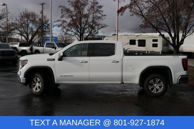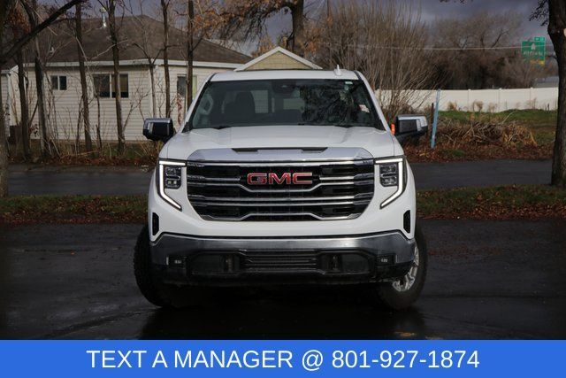 This Sierra rolled in looking like it skips leg day because it already lifts enough for everyone else. This Recent Arrival 2023 GMC Sierra 1500 SLT delivers bold capability paired with premium comfort and refined styling. Under the hood, the EcoTec3 6.2L V8 provides powerful performance that's ready for towing, hauling, or simply dominating the on-ramp. The 4WD system adds confidence and control whether you're on the job site or heading off the beaten path. Finished in classic Summit White, this Sierra has a clean, commanding presence that never goes out of style. Built with strength and sophistication in mind, its a truck that works hard and cleans up well.