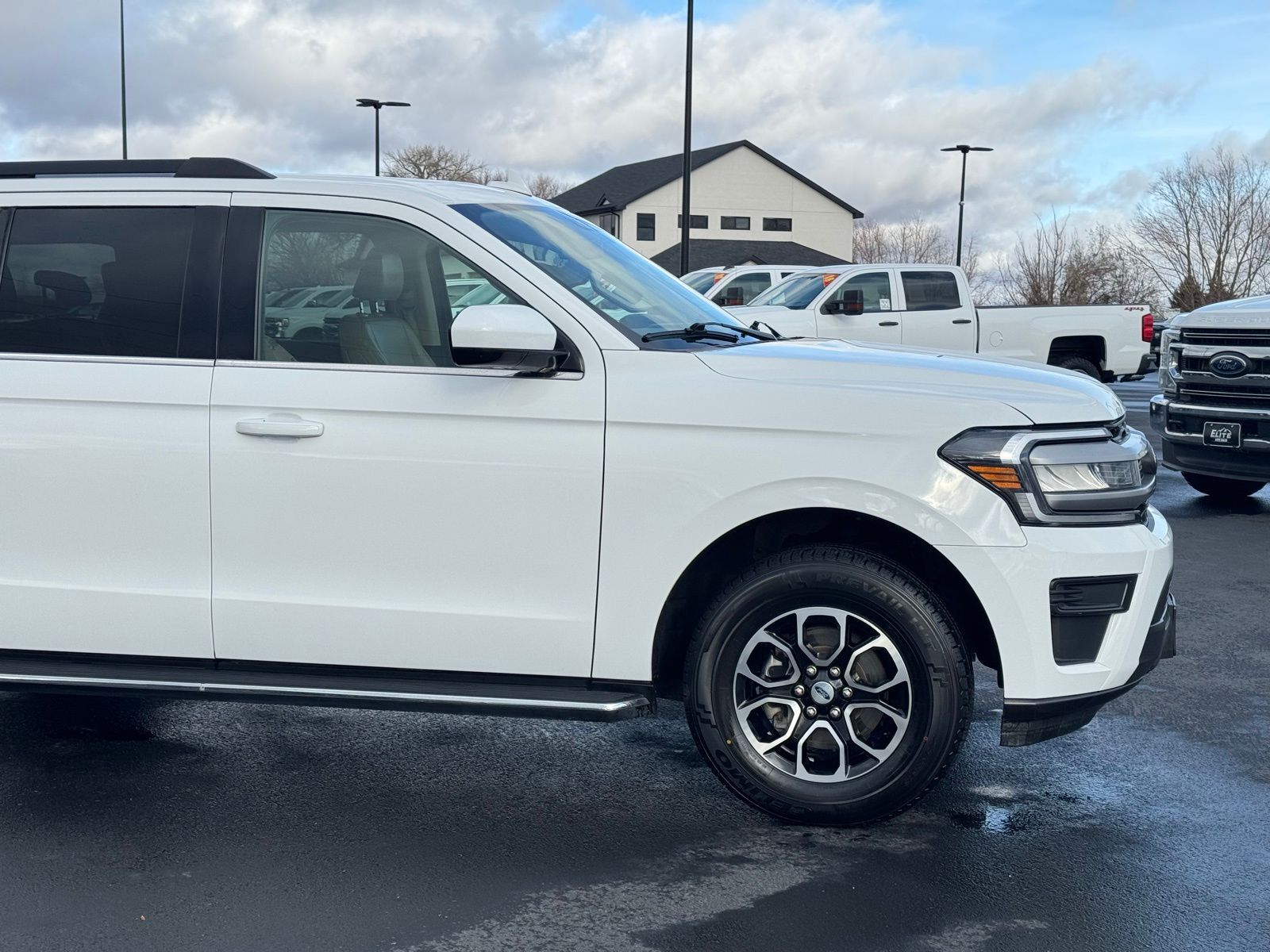 White 2023 Ford Expedition Max XLT 4D Sport Utility 2023 110V/150W AC Power Outlet, 2nd Row Power-Folding Captain's Chairs, 3rd Row Vinyl Power-Folding Head Restraints, 4-Door Intelligent Access (Lock/Unlock), Accent Color Painted Rear Bumper, ActiveX-Trimmed 1st & 2nd Row Seats, Advanced Security Pack, Ambient Lighting, Bright Chrome Plated Accent Platform Running Boards, Equipment Group 202A High Package, Heated Steering Wheel, Heated/Ventilated Front Seats, Power Liftgate, Power Tilt/Telescopic Steering Wheel w/Memory, Power-Adjustable Pedals w/Memory, Power-Folding Sideview Mirrors w/Autofold, Remote Start, SecuriCode Keyless Entry Keypad, Wireless Charging Pad. XLT 10-Speed Automatic Ford EcoBoost 3.5L V6 GTDi DOHC 24V Twin Turbocharged Expedition Max 16/22 City/Highway MPG 4WD