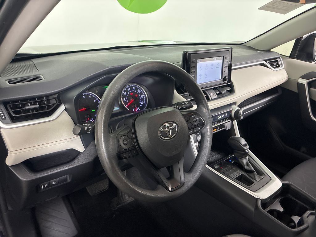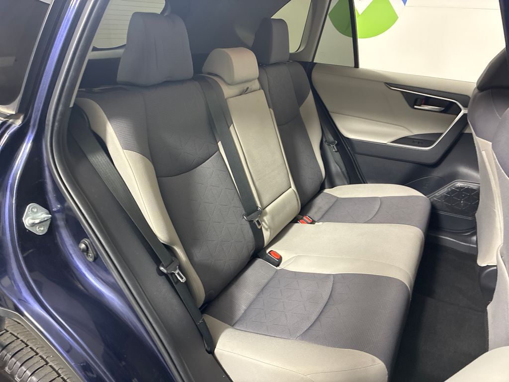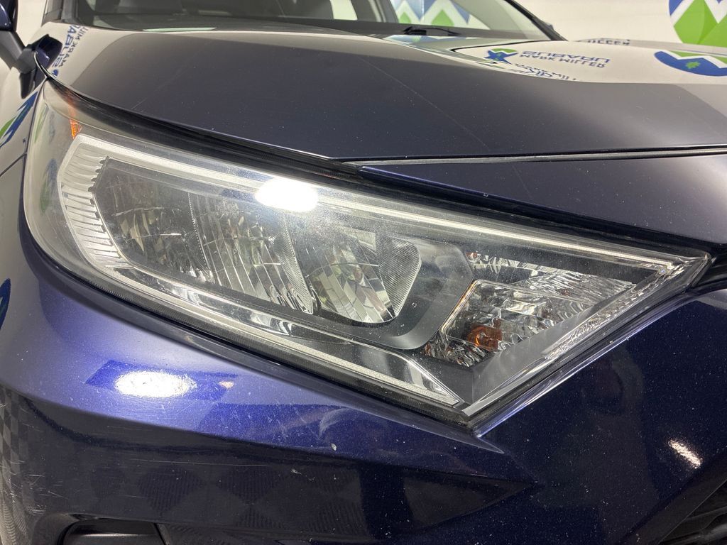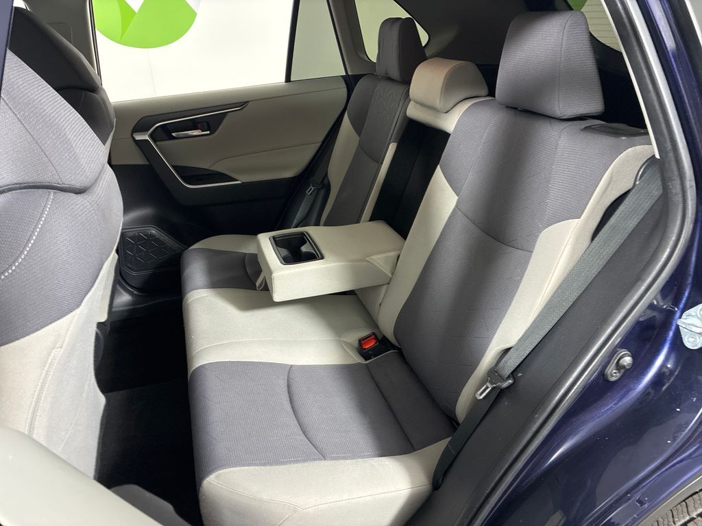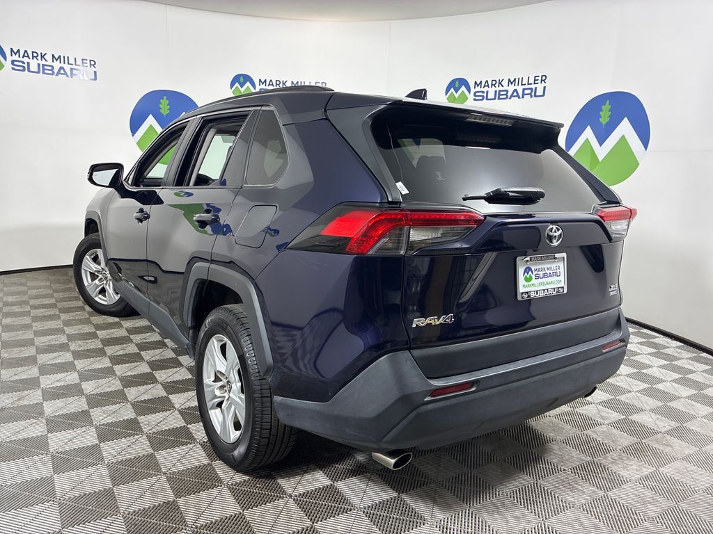 This 2019 Blueprint Toyota RAV4 XLE AWD is well equipped and includes these features and benefits: AWD, Black Cloth, 17'' x 7.0J Alloy Wheels, 4-Wheel Disc Brakes, 6 Speakers, ABS brakes, Air Conditioning, Alloy wheels, AM/FM radio, Apple CarPlay, Auto High-beam Headlights, Automatic temperature control, Axle Ratio: 3.177, Brake assist, Bumpers: body-color, Delay-off headlights, Driver door bin, Driver vanity mirror, Dual front impact airbags, Dual front side impact airbags, Electronic Stability Control, Emergency communication system: Entune Safety Connect, Exterior Parking Camera Rear, Fabric Seat Trim, Four wheel independent suspension, Front anti-roll bar, Front Bucket Seats, Front Center Armrest, Front dual zone A/C, Front fog lights, Front reading lights, Fully automatic headlights, Heated door mirrors, Illuminated entry, Knee airbag, Low tire pressure warning, Occupant sensing airbag, Outside temperature display, Overhead airbag, Overhead console, Panic alarm, Passenger door bin, Passenger vanity mirror, Power door mirrors, Power moonroof, Power steering, Power windows, Radio data system, Radio: Entune 3.0 Audio, Rear anti-roll bar, Rear seat center armrest, Rear window defroster, Rear window wiper, Remote keyless entry, Roof rack: rails only, Speed control, Speed-sensing steering, Split folding rear seat, Spoiler, Steering wheel mounted audio controls, Tachometer, Telescoping steering wheel, Tilt steering wheel, Traction control, Trip computer, Turn signal indicator mirrors, and Variably intermittent wipers.