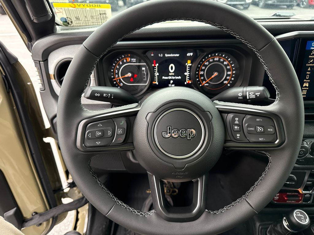 110 Mph Vehicle Max Speed Calibration, 115V Auxiliary Power Outlet, 12.3'' Touchscreen Display, 2-Piece Body Color Fender Flares, 3.73 Rear Axle Ratio, 4-Wheel Disc Brakes, 4-Wheel Drive Decal, 400W Inverter, 4G LTE Wi-Fi Hot Spot, 8 Speakers, ABS brakes, Advanced Brake Assist, Air Conditioning, Air Conditioning with Auto Temp Control, Alexa Built-in, Alpine Premium Audio System, AM/FM radio: SiriusXM with 360L, Apple CarPlay, Apple CarPlay/Android Auto, Auto High Beam Headlamp Control, Auto-Dimming Rear-View Mirror, Automatic Headlamps, Auxiliary Switches, Black 3-Piece Hard Top, Black Grille with Gloss Black Rings, Blind Spot and Cross Path Detection, Brake assist, Class IV Receiver Hitch, Cluster 7.0'' TFT Color Display, Compass, Connected Travel and Traffic Services, Connectivity - US/Canada, Convenience Group, Corning Gorilla Glass, Daytime Running Lamp System, Daytime Running Lamps LED Accents, Deep Tint Sunscreen Windows, Delay-off headlights, Driver door bin, Driver vanity mirror, Dual front impact airbags, Dual front side impact airbags, E-Locker Rear Axle, Electronic Stability Control, Emergency/Assistance Call, For Details, Visit DriveUconnect.com, Freedom Panel Storage Bag, Front anti-roll bar, Front Bucket Seats, Front Center Armrest w/Storage, Front Door Locks 2-Door Passive Entry, Front fog lights, Front Heavy Duty Red Accent Shock Absorbers, Front LED Fog Lamps, Front License Plate Bracket, Front reading lights, Full Speed Forward Collision Warning Plus, Google Android Auto, GPS Navigation, HD Radio, Heated Front Seats, Heated Steering Wheel, Heavy-Duty Engine Cooling, Illuminated entry, Increased Travel Export Tuned Suspension, Integrated Center Stack Radio, Integrated roll-over protection, Integrated Voice Command with Bluetooth, LED Premium Reflector Headlamps, LED Taillamps, Low tire pressure warning, Manufacturer's Statement of Origin, Media Hub with 2 Charge Only USBs, Mold in Color Bumper with Gloss Black, MOPAR All-Weather Slush Mats, MOPAR Spray in Bedliner, Normal Duty Suspension, Occupant sensing airbag, Off-Road Plus Mode, Outside temperature display, Overhead airbag, Panic alarm, ParkSense Rear Park Assist System, ParkView Rear Back-Up Camera, Passenger door bin, Passenger vanity mirror, Power Heated Mirrors, Power steering, Power windows, Premium Wrapped Steering Wheel, Protection Sill Rails, Quick Order Package 24W Willys, Radio data system, Radio: Uconnect 5 Navigation with 12.3'' Display, Radio: Uconnect 5 with 12.3'' Display, Rear anti-roll bar, Rear Heavy Duty Red Accent Shock Absorbers, Rear reading lights, Rear Sliding Window, Rear Window Defroster, Remote keyless entry, Remote Start System, Safety Group, Security Alarm, SiriusXM Radio Service, SiriusXM with 360L, Speed control, Split folding rear seat, Steering wheel mounted audio controls, Sun Visors with Illuminated Vanity Mirrors, Tachometer, Technology Group, Telescoping steering wheel, Tilt steering wheel, Traction control, Trailer Hitch Zoom, Trip computer, Universal Garage Door Opener, USB Host Flip, Variably intermittent wipers, Voltmeter, Wheels: 17'' x 7.5'' Black Steel Styled, Wheels: 17'' x 7.5'' Painted Black, Willys Hood Decal. Price includes: $1000 - 2026 National Retail Bonus Cash . Exp. 04/30/2026 $1000 - 2026 West BC Retail Bonus Cash . Exp. 04/30/2026