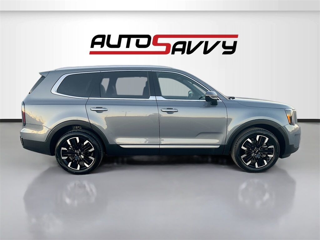 Discover the 2023 Kia Telluride SX at AutoSavvy Las Vegas, a stunning blend of performance and luxury. With only 22,109 miles, this Everlasting Silver SUV is powered by a robust LAMBDA II 3.8L V-6 engine, delivering an impressive 291 horsepower. The Telluride SX trim offers an exceptional driving experience with premium features such as leather front seat upholstery, dual sunroofs, and a state-of-the-art 12.3-inch touchscreen display equipped with Apple CarPlay and Android Auto. Enjoy the comfort of heated and ventilated front seats, dual-zone climate control, and a 10-speaker Harman/Kardon audio system that elevates every journey. Safety features abound, including Adaptive Cruise Control, Blind Spot Monitor, and Lane Departure Warning, ensuring peace of mind on every drive. The current status of the title is branded, providing transparency for your purchase. As a Savvy Certified vehicle, this Kia Telluride has undergone a meticulous inspection to meet high standards of quality and reliability. At AutoSavvy Las Vegas, we are committed to delivering exceptional vehicles and outstanding customer service. With the assurance of a 4-month/4,500 Mile Warranty, you can drive confidently knowing you’re covered. Whether you’re navigating city streets or embarking on a family adventure, the 2023 Kia Telluride SX offers the perfect combination of power, luxury, and advanced technology. Visit us today to experience this remarkable SUV and elevate your driving experience.