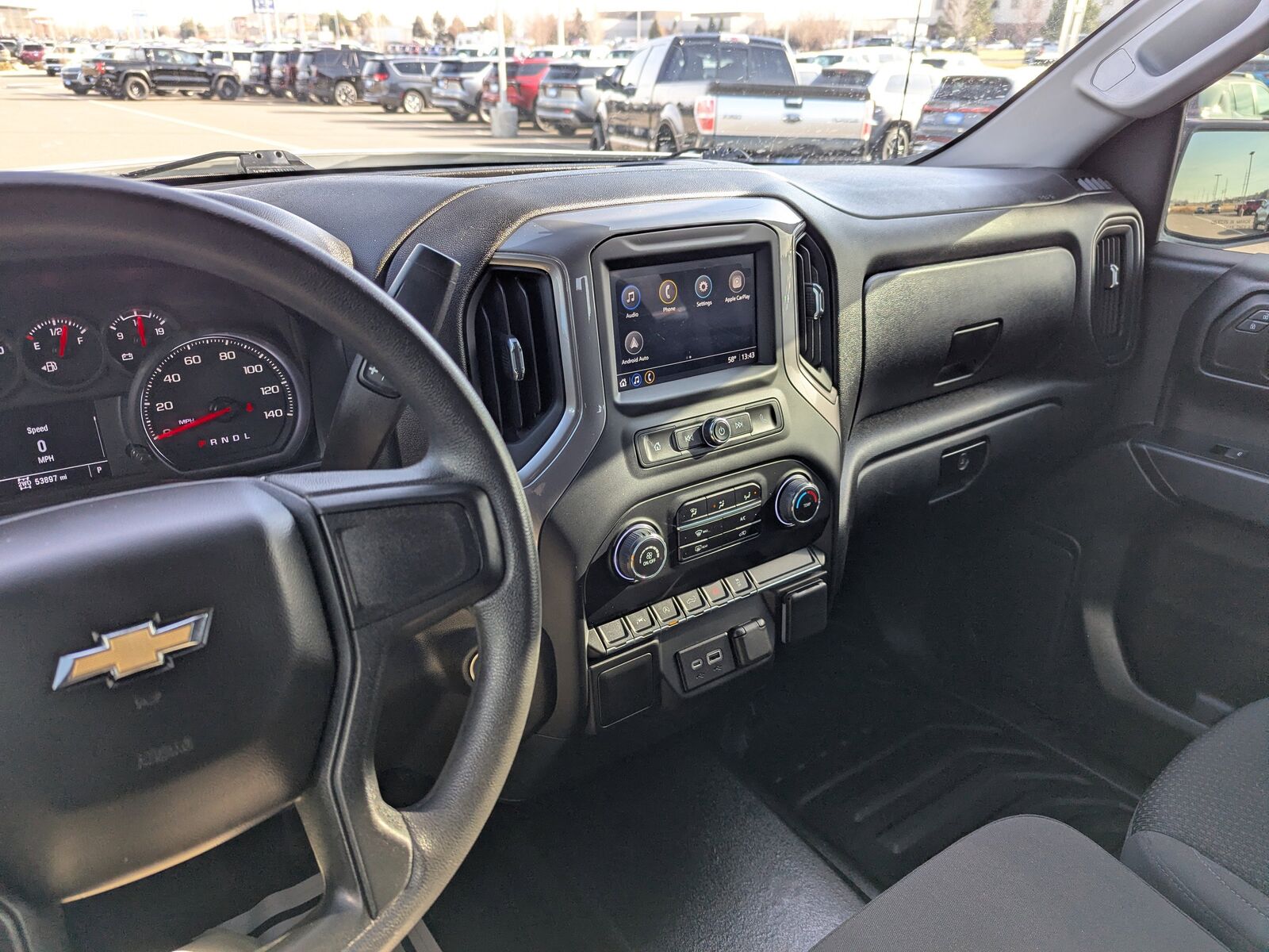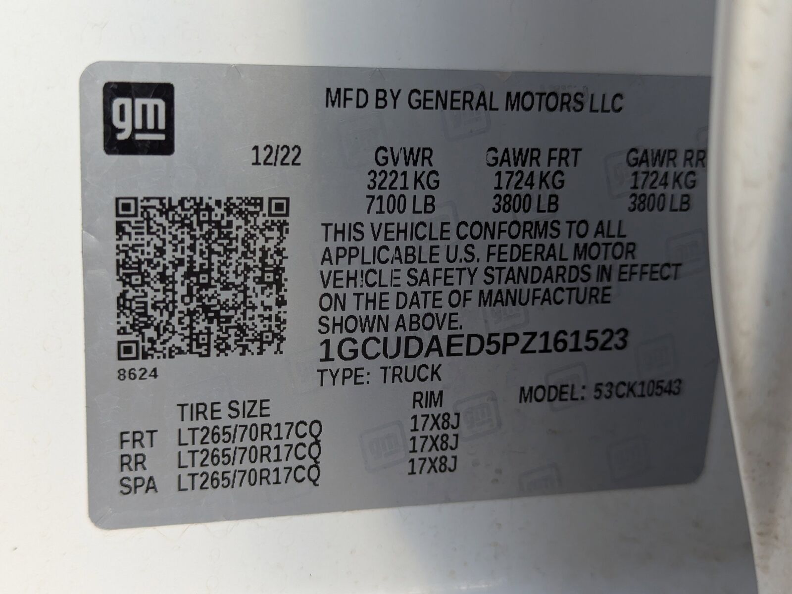 AUTO-LOCKING REAR DIFFERENTIAL,GVWR 7100 LBS. (3221 KG),GLASS DEEP-TINTED,WT CONVENIENCE PACKAGE includes (AKO) tinted windows (C49) rear-window defogger (K34) cruise control and (DLF) power mirrors,TAILGATE GATE FUNCTION MANUAL WITH EZ LIFT includes power lock and release,AIR FILTER HEAVY-DUTY,SUMMIT WHITE,DEFOGGER REAR-WINDOW ELECTRIC,SKID PLATES,MIRRORS OUTSIDE HEATED POWER-ADJUSTABLE When (PQA) WT Safety Package is ordered includes (DP6) high gloss Black mirror caps.),COOLING EXTERNAL ENGINE OIL COOLER,ENGINE 5.3L ECOTEC3 V8 (355 hp [265 kW] @ 5600 rpm 383 lb-ft of torque [518 Nm] @ 4100 rpm); featuring available Dynamic Fuel Management that enables the engine to operate in 17 different patterns between 2 and 8 cylinders depending on demand to optimize power delivery and efficiency,SEATS FRONT 40/20/40 SPLIT-BENCH with covered armrest storage and under-seat storage (lockable) (STD),ALTERNATOR 170 AMPS,LICENSE PLATE KIT FRONT,WORK TRUCK PREFERRED EQUIPMENT GROUP includes standard equipment,NOT EQUIPPED WITH STEERING COLUMN LOCK SEE DEALER FOR DETAILS,POWER OUTLET INSTRUMENT PANEL 120-VOLT (400 watts shared with (KC9) bed mounted power outlet) (Includes (UBI) USB ports on Crew and Double Cab models only. Beginning with the start of production certain vehicles will be forced to include (RFO) Not Equipped with USB ports rear.),REAR AXLE 3.23 RATIO,WHEELS 17 X 8 (43.2 CM X 20.3 CM) ULTRA SILVER PAINTED STEEL (STD),TRANSMISSION 10-SPEED AUTOMATIC ELECTRONICALLY CONTROLLED with overdrive and tow/haul mode. Includes Cruise Grade Braking and Powertrain Grade Braking,JET BLACK CLOTH SEAT TRIM,AUDIO SYSTEM CHEVROLET INFOTAINMENT 3 SYSTEM 7 diagonal color touchscreen AM/FM stereo. Additional features for compatible phones include: Bluetooth audio streaming for 2 active devices voice command pass-through to phone wired Apple CarPlay and Android Auto capable. (STD),LED CARGO AREA LIGHTING located in pickup bed activated with switch on center switch bank or key fob,COOLING AUXILIARY EXTERNAL TRANSMISSION OIL COOLER,POWER OUTLET BED MOUNTED 120-VOLT (400 watts shared with (KI4) instrument panel mounted power outlet),USB PORTS REAR DUAL CHARGE-ONLY Beginning with the start of production certain vehicles will be forced to include (RFO) Not Equipped with USB ports rear.),TIRES LT265/70R17C ALL-TERRAIN BLACKWALL,CRUISE CONTROL ELECTRONIC with set and resume speed steering wheel-mounted,TIRE SPARE LT265/70R17 ALL-TERRAIN BLACKWALL,NOT EQUIPPED WITH USB PORTS REAR SEE DEALER FOR DETAILS (Beginning with the start of production certain vehicles will be forced to include (RFO) Not Equipped with USB ports rear.),WORK TRUCK PACKAGE Includes (NZZ) skid plates and (K47) heavy-duty air filter,Lane Departure Warning,Lane Keeping Assist,Front Collision Mitigation,Front Collision Warning,Automatic Highbeams,High Output,Keyless Start,Four Wheel Drive,Tow Hooks,Power Steering,ABS,4-Wheel Disc Brakes,Steel Wheels,Tires - Front All-Season,Tires - Rear All-Season,Tires - Front All-Season,Tires - Rear All-Season,Daytime Running Lights,Automatic Highbeams,AM/FM Stereo,MP3 Capability,Bluetooth Connection,Auxiliary Audio Input,Smart Device Integration,Bluetooth Connection,Split Bench Seat,Pass-Through Rear Seat,Rear Bench Seat,Floor Mats,Adjustable Steering Wheel,Power Windows,Power Door Locks,Keyless Entry,Power Door Locks,Power Outlet,MP3 Capability,Auxiliary Audio Input,A/C,Front Collision Mitigation,Front Collision Warning,Front Collision Mitigation,Traction Control,Stability Control,Daytime Running Lights,Driver Air Bag,Passenger Air Bag,Front Side Air Bag,Front Head Air Bag,Rear Head Air Bag,Passenger Air Bag Sensor,Back-Up Camera,Lane Departure Warning,Lane Keeping Assist,Front Collision Warning,Driver Restriction Features,Tire Pressure Monitor