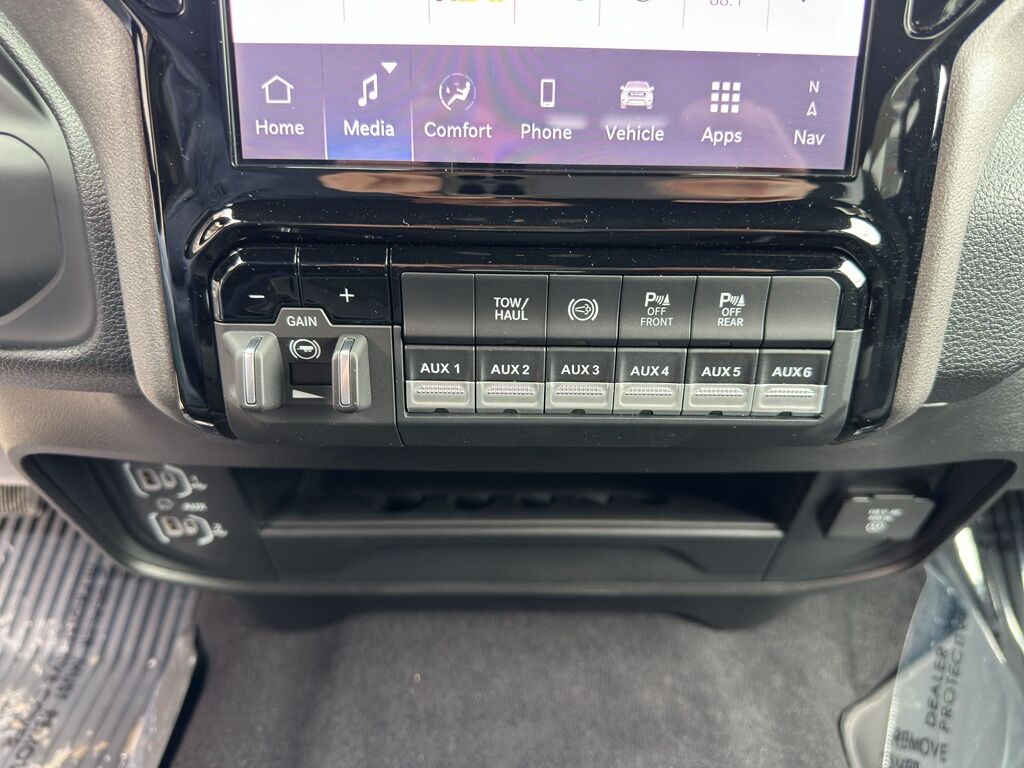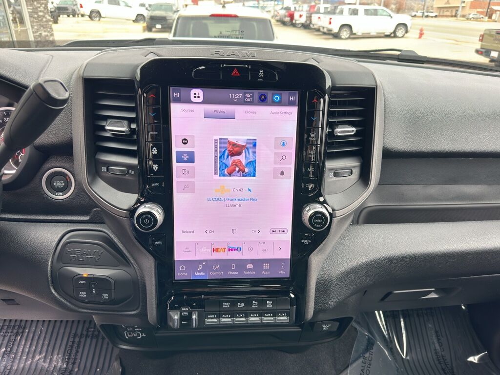 Cold Weather Group: Engine Block Heater; MOPAR Winter Front Grille Cover,Tradesman Level 1 Equipment Group: Convenience Group; Google Android Auto; SiriusXM Radio Service; Rear View Auto Dim Mirror; For Details Visit DriveUconnect.com; For More Info, Call 800-643-2112; Rear Power Sliding Window; Integrated Voice Command with Bluetooth; Connectivity - US/Canada; Emergency Vehicle Alert System (EVAS); Manual Folding Exterior Mirrors; 12" Touchscreen Display; Tinted Acoustic Windshield Glass; GPS Navigation; 4G LTE Wi-Fi Hot Spot; GPS Antenna Input; Exterior Mirrors with Heating Element; MOPAR Black Tubular Side Steps; SiriusXM with 360L; Global Telematics Box Module; Connected Travel and Traffic Services; Mirror Running Lights; Black Exterior Mirrors; Exterior 115V AC Outlet; Alexa Built-In; Carpet Floor Covering; Apple CarPlay; Power-Adjustable Convex Aux Mirrors; Off-Road Information Pages; Selectable Tire Fill Alert; Trailer Tow Pages; 400W Inverter; Cloth 40/20/40 Bench Seat; Disassociated Touchscreen Display; HD Radio; Power Heat Fold Telescopic Mirrors; Uconnect 5 Navigation with 12.0" Display Radio; Exterior Mirrors with Supplemental Signals; Exterior Mirrors Courtesy Lamps; Air Conditioning ATC with Dual Zone Control; 115-Volt Auxiliary Front Power Outlet; Manuarl Telescoping Mirrors; Power Adjust Mirrors; Front and Rear Floor Mats; ParkSense Front/rear Park Assist System,Quick Order Package 24A Tradesman,Bed Utility Group: MOPAR Spray in Bedliner; MOPAR Deployable Bed Step; LED Bed Lighting,5th Wheel/gooseneck Towing Prep Group,MOPAR Black Tubular Side Steps,Cloth 40/20/40 Bench Seat,50 Gallon Fuel Tank,Instrument Panel Mounted Auxiliary Switches,MOPAR Front and Rear Rubber Floor Mats,Forward collision mitigation with pedestrian impact prevention,Integrated navigation system with voice activation,Uconnect w/Bluetooth handsfree wireless device connectivity,Apple CarPlay/Android Auto smart device wireless mirroring,MOPAR retractable rear step,Cloth front seat upholstery,Driver seat with 4-way directional controls,Front passenger seat with 4-way directional controls,12 inch primary display,Pedestrian impact prevention,4G LTE Wi-Fi Hot Spot mobile hotspot internet access,ParkView rear mounted camera,Adaptive cruise control with stop and go,Brake assist system,Cruise control with steering wheel mounted controls,Primary monitor touchscreen,Part-time 4WD,Cummins High Output 6.7L I-6 diesel direct injection, VVT intercooled turbo, diesel, engine with 430HP,Cummins High Output 6.7L I-6,Alexa Built-In built-in virtual assistant,Push-button,Bluetooth wireless audio streaming,Following distance alert,Smart key with push button start,Trailer light test,Dual-zone front climate control,Sentry Key immobilizer,RAM Connect vehicle tracker,Active noise cancellation,Connected Travel & Traffic Services real-time traffic,RAM Connect vehicle integrated emergency SOS system,Trailer brake controller,Trailer sway control,Uconnect external memory control,Internet radio capability,5 USB ports,Electronic stability control system with anti-roll,Hill start assist,Automatic climate control,Rear Seat Reminder Alert rear seat check warning,ParkSense front and rear parking sensors,1 exterior 120V AC power outlet,LED front fog lights,Active grille shutters,Connected Travel & Traffic Services real-time weather,Trailer hitch light,Manual rear child safety door locks,RAM Connect App mobile app access,Illuminated front beverage holders,Heated driver and passenger side door mirrors