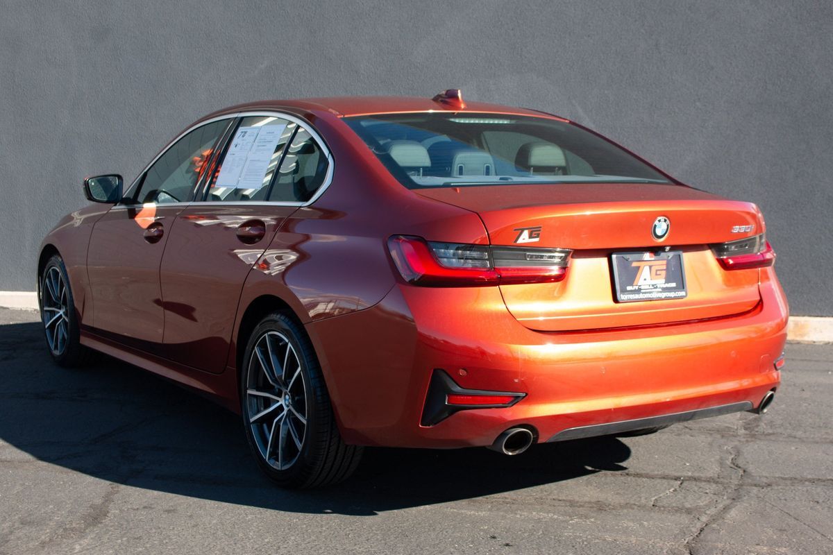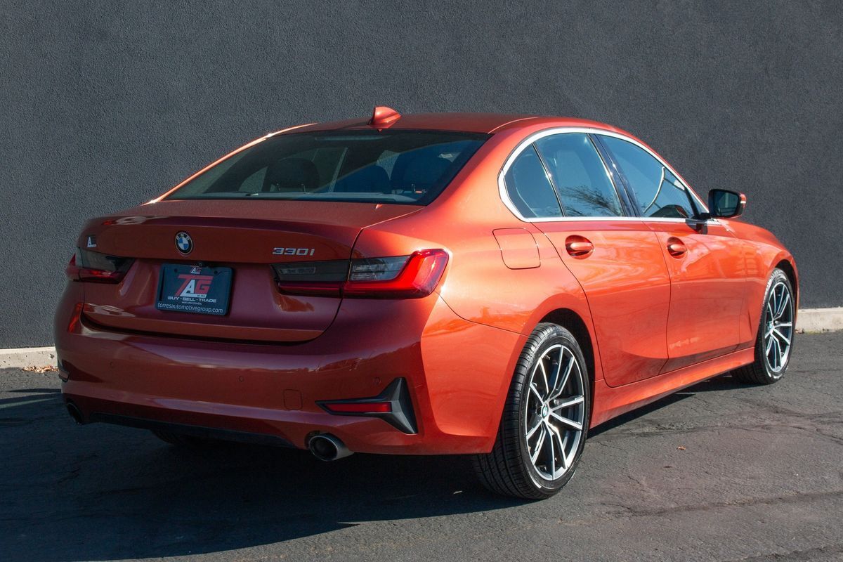 The 2020 BMW 3 Series 330i Sedan in the stunning Sunset Orange Metallic exterior is a marvel of modern automotive design- striking the perfect balance between elegance and performance. Its sleek lines and aerodynamic contours reflect BMW's commitment to both aesthetic beauty and engineering excellence. This model is equipped with a powerful 2.0L 4-cylinder engine- ensuring a dynamic driving experience with the performance and efficiency that BMW enthusiasts expect.