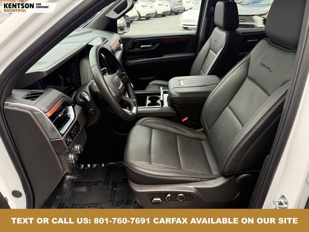 License Plate Front Mounting Package, Preferred Equipment Group 5SA (15'' Diagonal Multi-Color Head-Up Display, 4-Way Power Driver Lumbar Seat Adjuster, 4-Way Power Front Passenger Lumbar Seat Adjuster, AutoSense Hands-Free Power Liftgate, Bright Front and Rear Door Sill Plates, Dual Exhaust System, Galvano Bodyside Moldings, Magnetic Ride Control Suspension, Perforated Heather and Ventilated Driver and Front Passenger Seats, Power Release 2nd Row Bucket Seats, Power Tilt and Telescopic Steering Column, and Wheels: 20'' x 9'' 6-Spoke Polished Aluminum), 4WD, 10 Speakers, 3.23 Rear Axle Ratio, 3rd row seats: split-bench, 4-Wheel Disc Brakes, ABS brakes, Adaptive suspension, Air Conditioning, Alloy wheels, AM/FM radio: SiriusXM with 360L, Apple CarPlay/Android Auto, Audio memory, Auto High-beam Headlights, Auto-dimming door mirrors, Auto-dimming Rear-View mirror, Auto-leveling suspension, Automatic temperature control, Bodyside moldings, Bose 10-Speaker Surround with CenterPoint, Brake assist, Bumpers: body-color, Compass, Delay-off headlights, Deleted OnStar Basics, Driver door bin, Driver vanity mirror, Dual front impact airbags, Dual front side impact airbags, Electronic Stability Control, Emergency communication system: OnStar and GMC connected services capable, Exterior Parking Camera Rear, Four wheel independent suspension, Front anti-roll bar, Front Bucket Seats, Front Center Armrest, Front dual zone A/C, Front fog lights, Front reading lights, Fully automatic headlights, Garage door transmitter, Heads-Up Display, Heated door mirrors, Heated Driver and Front Passenger Seats, Heated front seats, Heated rear seats, Heated steering wheel, Illuminated entry, Low tire pressure warning, Memory seat, Navigation system: GMC Connected Navigation, Occupant sensing airbag, Outside temperature display, Overhead airbag, Overhead console, Panic alarm, Passenger door bin, Passenger vanity mirror, Perforated Leather Seating Surfaces, Power door mirrors, Power driver seat, Power Liftgate, Power passenger seat, Power steering, Power windows, Radio: 16.8'' Diagonal Premium GMC Infotainment System, Rain sensing wipers, Rear air conditioning, Rear anti-roll bar, Rear reading lights, Rear window defroster, Rear window wiper, Remote keyless entry, Security system, SiriusXM with 360L, Speed control, Speed-sensing steering, Split folding rear seat, Spoiler, Steering wheel memory, Steering wheel mounted audio controls, Tachometer, Telescoping steering wheel, Tilt steering wheel, Traction control, Trip computer, Turn signal indicator mirrors, Variably intermittent wipers, Ventilated front seats, and Voltmeter.