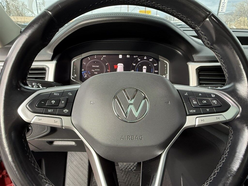 Engine: 3.6L VR6 DOHC 24-Valve -inc: FSI direct fuel injection and start-stop system,Transmission: 8-Speed Automatic w/Tiptronic,3.60 Axle Ratio,Standard Suspension,GVWR: 6-019 lbs (2-730 kgs),Transmission w/Driver Selectable Mode,Full-Time All-Wheel,Engine Oil Cooler,Regenerative Alternator,Trailer Wiring Harness,1080# Maximum Payload,Gas-Pressurized Shock Absorbers,Front And Rear Anti-Roll Bars,Electro-Hydraulic Power Assist Speed-Sensing Steering,18.6 Gal. Fuel Tank,Quasi-Dual Stainless Steel Exhaust,Permanent Locking Hubs,Strut Front Suspension w/Coil Springs,Multi-Link Rear Suspension w/Coil Springs,4-Wheel Disc Brakes w/4-Wheel ABS- Front Vented Discs- Brake Assist- Hill Descent Control- Hill Hold Control and Electric Parking Brake,Wheels: 20"" 5-Spoke 2-Tone Machined Alloy,Tires: 20"" All-Season,Steel Spare Wheel,Compact Spare Tire Mounted Inside Under Cargo,Express Open/Close Sliding And Tilting Glass 1st And 2nd Row Sunroof w/Power Sunshade,Body-Colored Front Bumper w/Metal-Look Rub Strip/Fascia Accent,Body-Colored Rear Bumper w/Black Rub Strip/Fascia Accent and Chrome Bumper Insert,Chrome Side Windows Trim and Black Front Windshield Trim,Body-Colored Door Handles,Chrome Bodyside Insert- Black Bodyside Cladding and Black Wheel Well Trim,Body-Colored Power Heated Side Mirrors w/Power Folding and Turn Signal Indicator,Fixed Rear Window w/Wiper and Defroster,Deep Tinted Glass,Rain Detecting Variable Intermittent Wipers w/Heated Jets,Fully Galvanized Steel Panels,Lip Spoiler,Black Grille w/Chrome Accents,Power Liftgate Rear Cargo Access,Front Fog Lamps,Cornering Lights,Perimeter/Approach Lights,LED Brakelights,Auto On/Off Projector Beam Led Low/High Beam Daytime Running Auto-Leveling Directionally Adaptive Auto High-Beam Headlamps w/Delay-Off,Headlights-Automatic Highbeams,Radio w/Seek-Scan- Clock- Speed Compensated Volume Control- Steering Wheel Controls- Rear Controls and Radio Data System,Audio Theft Deterrent,Streaming Audio,Window Grid Diversity Antenna,12 Speakers,Regular Amplifier,Wireless Phone Connectivity,2 LCD Monitors In The Front,Real-Time Traffic Display,8-Way Driver Seat,Passenger Seat,Manual Tilt/Telescoping Steering Column,Mobile Hotspot Internet Access,Fixed 50-50 Split-Bench 3rd Row Seat Front- 2 Manual and Adjustable Head Restraints,Front Cupholder,Rear Cupholder,Compass,Valet Function,Power Fuel Flap Locking Type,Remote Releases -Inc: Proximity Cargo Access,Cruise Control w/Steering Wheel Controls,Adaptive Cruise Control (ACC) w/Stop & Go,HVAC -inc: Underseat Ducts- Headliner/Pillar Ducts and Console Ducts,Illuminated Locking Glove Box,Driver Foot Rest,Full Cloth Headliner,Leatherette Door Trim Insert,Leather/Metal-Look Gear Shifter Material,Interior Trim -inc: Simulated Wood/Metal-Look Instrument Panel Insert- Simulated Wood/Metal-Look Door Panel Insert- Piano Black Console Insert and Metal-Look Interior Accents,Driver And Passenger Visor Vanity Mirrors w/Driver And Passenger Illumination- Driver And Passenger Auxiliary Mirror,Full Floor Console w/Covered Storage- Mini Overhead Console- 3 12V DC Power Outlets and 1 Interior 120V AC Power Outlet,Front And Rear Map Lights,Fade-To-Off Interior Lighting,Full Carpet Floor Covering,Carpet Floor Trim,Cargo Area Concealed Storage,Trunk/Hatch Auto-Latch,Cargo Space Lights,VW Car-Net services (capabilities require enrollment or subscription) Tracker System,Smart Device Integration,Integrated Navigation System w/Voice Activation,Instrument Panel Covered Bin- Dashboard Storage- Driver / Passenger And Rear Door Bins and 1st Row Underseat Storage,Delayed Accessory Power,Driver Information Center,Redundant Digital Speedometer,Outside Temp Gauge,Digital/Analog Appearance,Manual Adjustable Front Head Restraints and Manual Adjustable Rear Head Restraints,2 Seatback Storage Pockets,Front Center Armrest and Rear Center Armrest,Immobilizer,Perimeter Alarm,3 12V DC Power Outlets,Air Filtration,3 12V DC Power Outlets and 1 Interior 120V AC Power Outlet,Side Impact Beams,Dual Stage Driver And Passenger Seat-Mounted Side Airbags,Rear Traffic Alert,Collision Mitigation-Front,Front Assist (Forward Collision Warning and Autonomous Emergency Braking),Park Distance Control w/Park Assist Front And Rear Parking Sensors,Aerial View Camera System,Dual Stage Driver And Passenger Front Airbags,Side Curtain Protection Curtain 1st- 2nd And 3rd Row Airbags,Airbag Occupancy Sensor,Power Rear Child Safety Locks,Outboard Front Lap And Shoulder Safety Belts -inc: Rear Center 3 Point- Height Adjusters and Pretensioners,Area View Back-Up Camera,Area View Front Camera,Area View Left Side Camera,Area View Right Side Camera