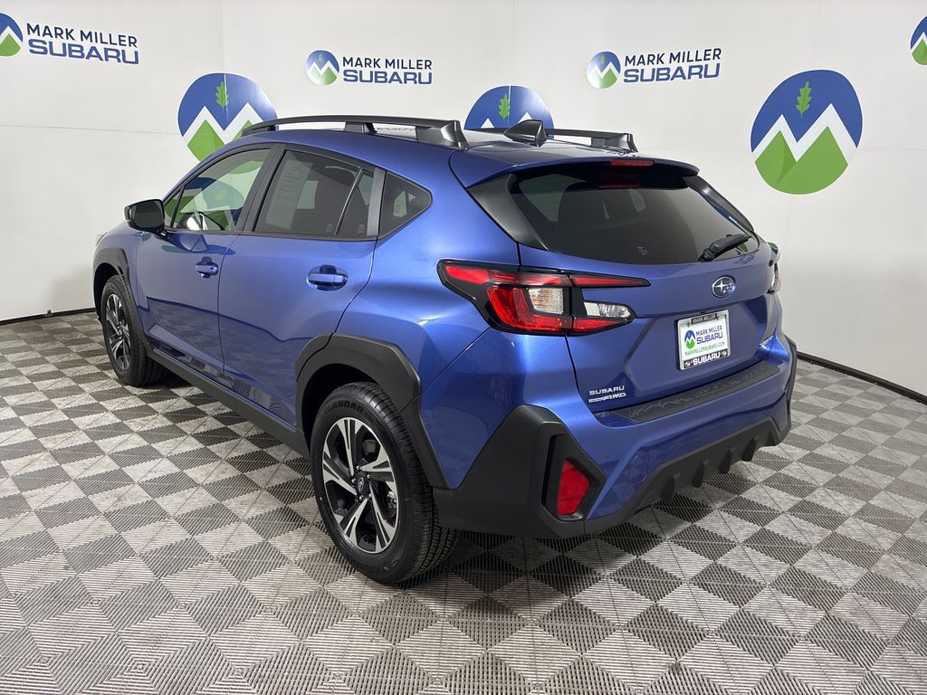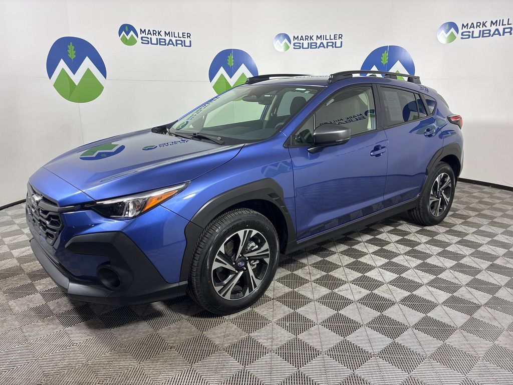 This 2025 Daybreak Blue Pearl Subaru Crosstrek Premium AWD is well equipped and includes these features and benefits: Crosstrek Mirror Package (Auto-Dimming Exterior Mirror w/Approach Light and Auto-Dimming Mirror w/Compass & HomeLink), Standard Model, Subaru Certified Pre-Owned Certified, 4-Wheel Disc Brakes, 6 Speakers, ABS brakes, Air Conditioning, All-Weather Floor Liners, Alloy wheels, AM/FM radio: SiriusXM, Anti-whiplash front head restraints, Auto High-beam Headlights, Automatic temperature control, Brake assist, Bumpers: body-color, Cloth Upholstery, Driver door bin, Driver vanity mirror, Dual front impact airbags, Dual front side impact airbags, Electronic Stability Control, Emergency communication system, Exterior Parking Camera Rear, Four wheel independent suspension, Front anti-roll bar, Front Bucket Seats, Front Center Armrest, Front dual zone A/C, Front fog lights, Front reading lights, Fully automatic headlights, Illuminated entry, Knee airbag, Low tire pressure warning, Occupant sensing airbag, Outside temperature display, Overhead airbag, Overhead console, Panic alarm, Passenger door bin, Passenger vanity mirror, Power door mirrors, Power steering, Power windows, Radio data system, Radio: Subaru 11.6'' Multimedia Plus System, Rear anti-roll bar, Rear Bumper Cover, Rear seat center armrest, Rear window defroster, Rear window wiper, Remote keyless entry, Security system, Speed control, Speed-sensing steering, Split folding rear seat, Spoiler, Steering wheel mounted audio controls, Tachometer, Telescoping steering wheel, Tilt steering wheel, Traction control, Trip computer, Turn signal indicator mirrors, Variably intermittent wipers, and Wheels: 17'' x 7.0'' J Machine Finish Aluminum-Alloy.