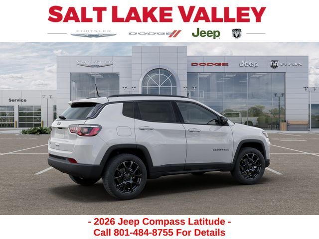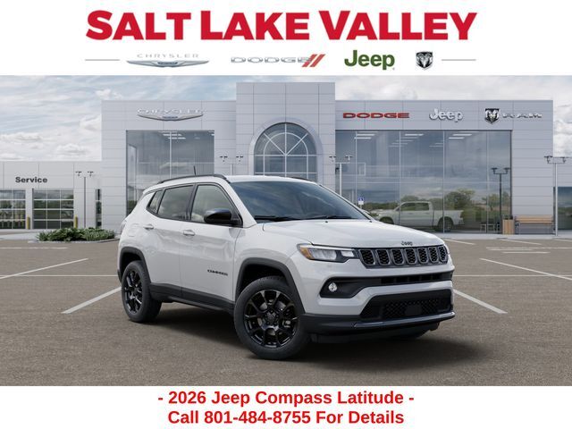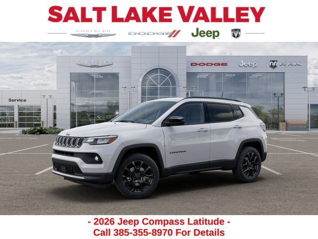 Adventure starts with the new Jeep Compass available now at Salt Lake Valley CDJR in Salt Lake City! Built for Utah’s canyons, trails, and highways alike, Jeep delivers freedom and capability in every mile. Discover why Compass drivers love to explore with confidence. Contact us at 801-484-8755 to schedule a time to see it today! 2026 Jeep Compass Latitude bright white clearcoat 2.0L I4 DOHC