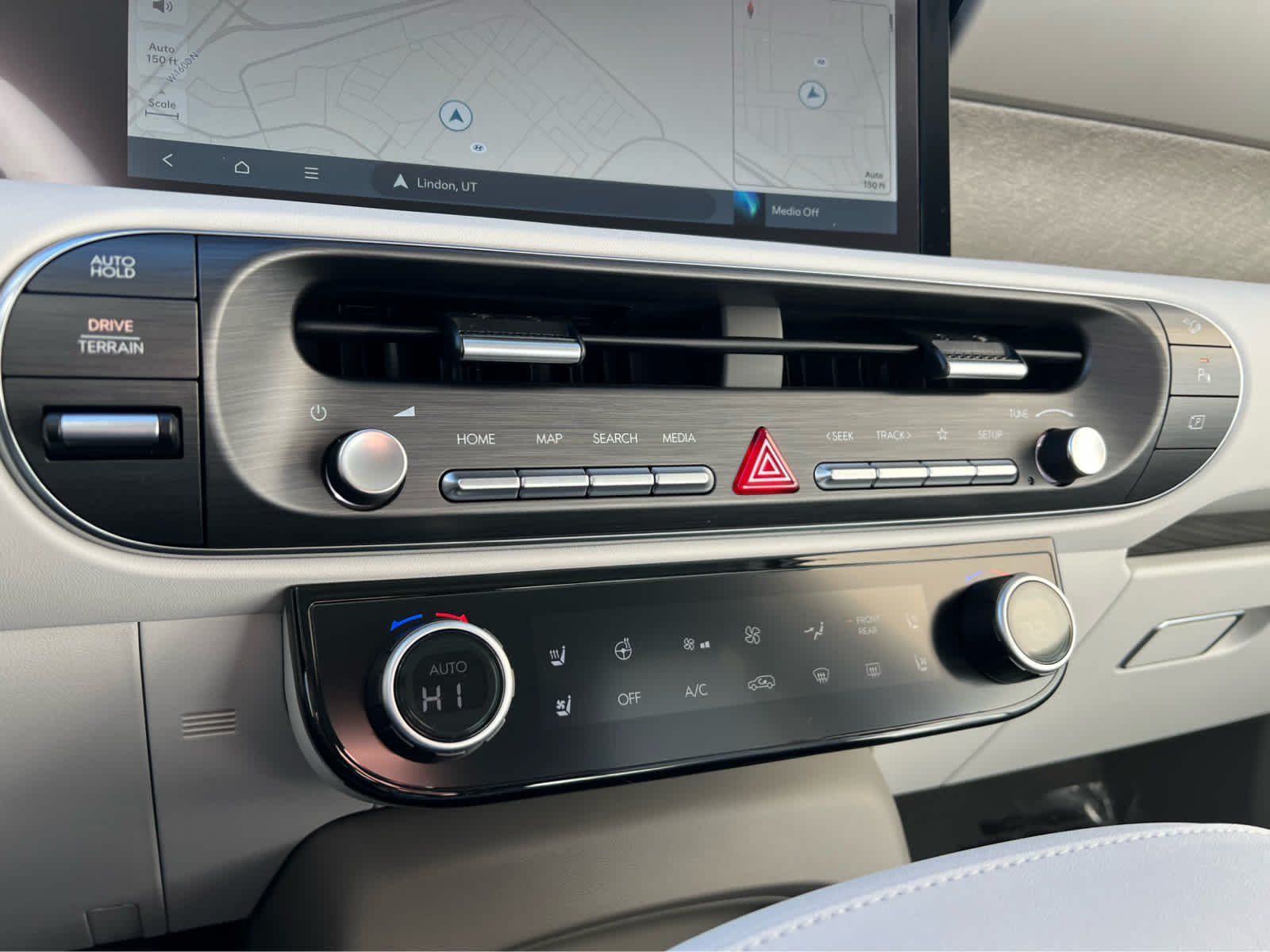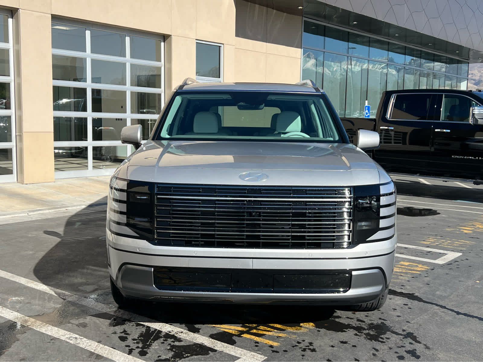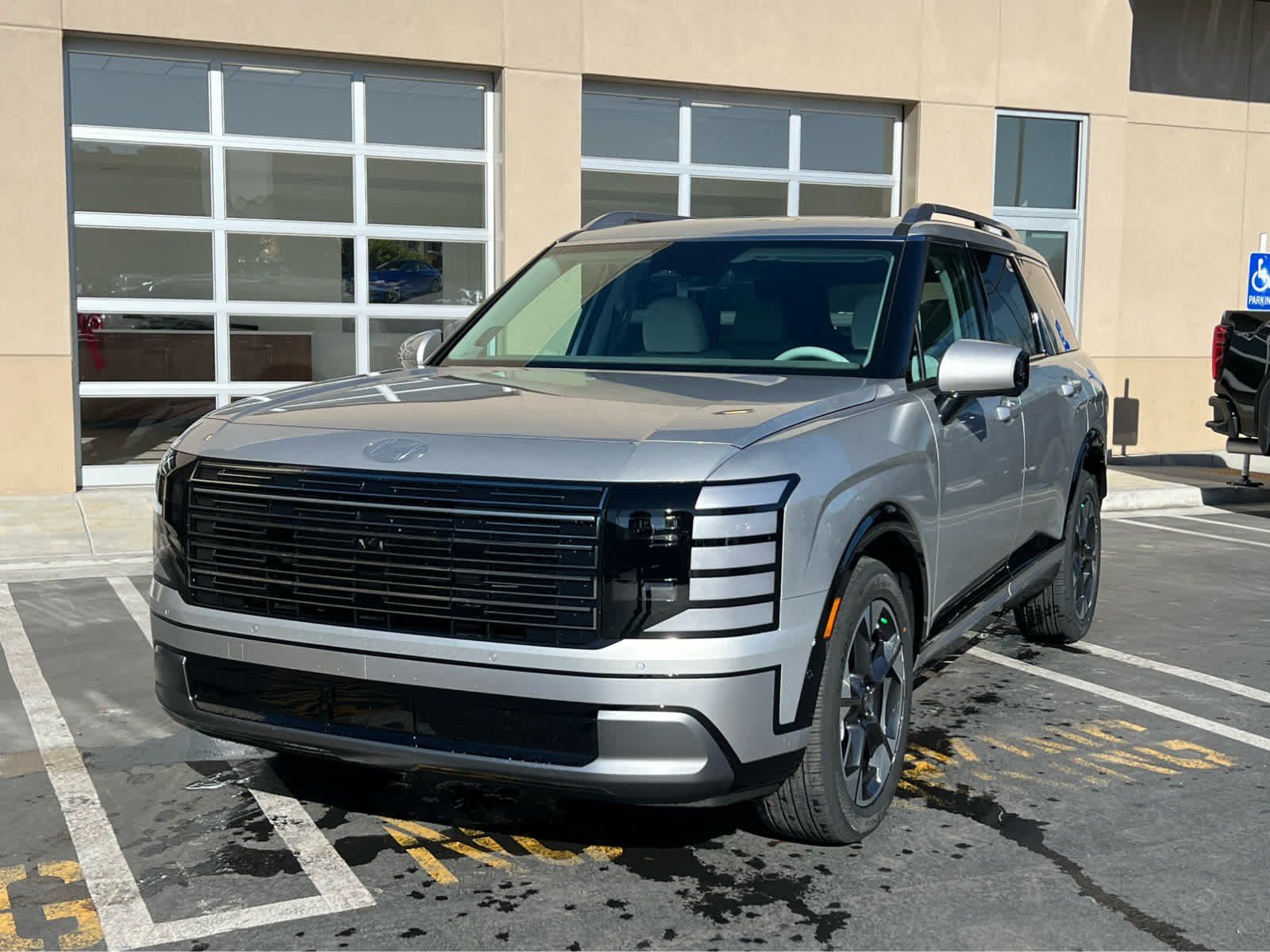 Leather Seats, Third Row Seat, Navigation, All Wheel Drive, Quad Bucket Seats, Power Liftgate, Rear Air, Heated Driver Seat. Rear Spoiler, MP3 Player, Rear Seat Audio Controls, Keyless Entry. Hyundai Limited with Typhoon Silver Metallic exterior and Gray interior features a V6 Cylinder Engine with 287 HP at 5800 RPM*.