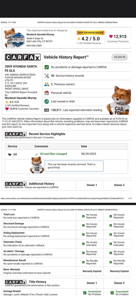 2009 HYUNDAI SANTA FE GLS SUV