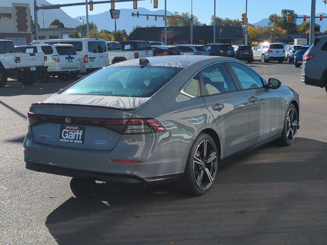 Ken Garff Honda is delighted to offer this outstanding-looking 2025 Honda Accord Hybrid Sport in Urban Gray Pearl. FWD Sport eCVT2.0L I4 DOHC 16V, 4-Wheel Disc Brakes, 8 Speakers, ABS brakes, Adaptive Cruise Control: Adaptive Cruise Control (ACC) with Low-Speed Follow, Air Conditioning, Alloy wheels, AM/FM radio, Apple CarPlay/Android Auto, Auto High-beam Headlights, Automatic temperature control, Blind Spot Information (BSI) System warning, Brake assist, Bumpers: body-color, Compass, Delay-off headlights, Driver door bin, Driver vanity mirror, Dual front impact airbags, Dual front side impact airbags, Electronic Stability Control, Emergency communication system: HondaLink, Exterior Parking Camera Rear, Fabric Seat Trim, Four wheel independent suspension, Front anti-roll bar, Front Bucket Seats, Front Center Armrest, Front dual zone A/C, Front reading lights, Fully automatic headlights, Heated Front Bucket Seats, Heated front seats, Illuminated entry, Knee airbag, Lane departure: Lane Keeping Assist System (LKAS) active, Leather Shift Knob, Leather steering wheel, Low tire pressure warning, Occupant sensing airbag, Outside temperature display, Overhead airbag, Overhead console, Panic alarm, Passenger door bin, Passenger vanity mirror, Power door mirrors, Power driver seat, Power moonroof, Power steering, Power windows, Radio data system, Radio: 180-Watt Audio System, Rear anti-roll bar, Rear reading lights, Rear seat center armrest, Rear side impact airbag, Rear window defroster, Remote keyless entry, Security system, Speed control, Speed-sensing steering, Speed-Sensitive Wipers, Split folding rear seat, Spoiler, Steering wheel mounted audio controls, Telescoping steering wheel, Tilt steering wheel, Traction control, Trip computer, Variably intermittent wipers, Wheels: 19 x 8.5J Berlina Black, 2.0L I4 DOHC 16V.46/41 City/Highway MPG Fuel Economy estimates are based on EPA mileage ratings. Actual mileage will vary depending on driving conditions, habits, vehicle maintenance, and other factors. Advertised Prices do not include any dealer installed options and advertised prices exclude leases.