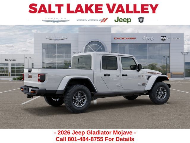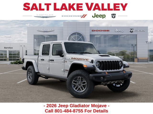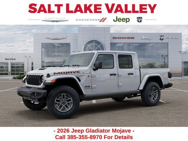 Adventure starts with the new Jeep Gladiator available now at Salt Lake Valley CDJR in Salt Lake City! Built for Utah’s canyons, trails, and highways alike, Jeep delivers freedom and capability in every mile. Discover why Gladiator drivers love to explore with confidence. Contact us at 801-484-8755 to schedule a time to see it today! 2026 Jeep Gladiator Mojave bright white clearcoat 3.6L V6 24V VVT