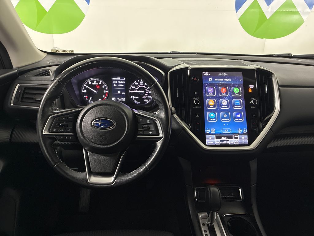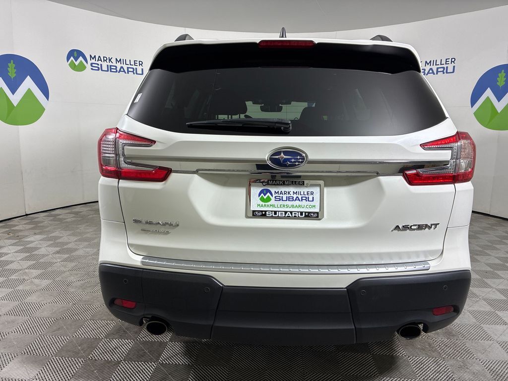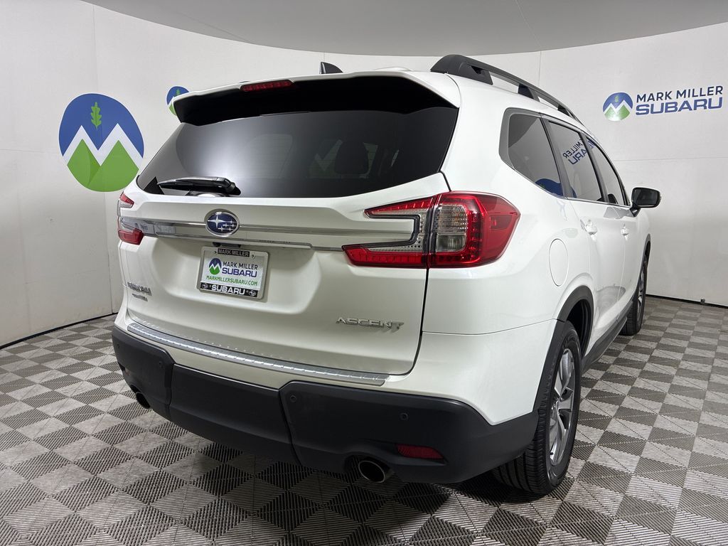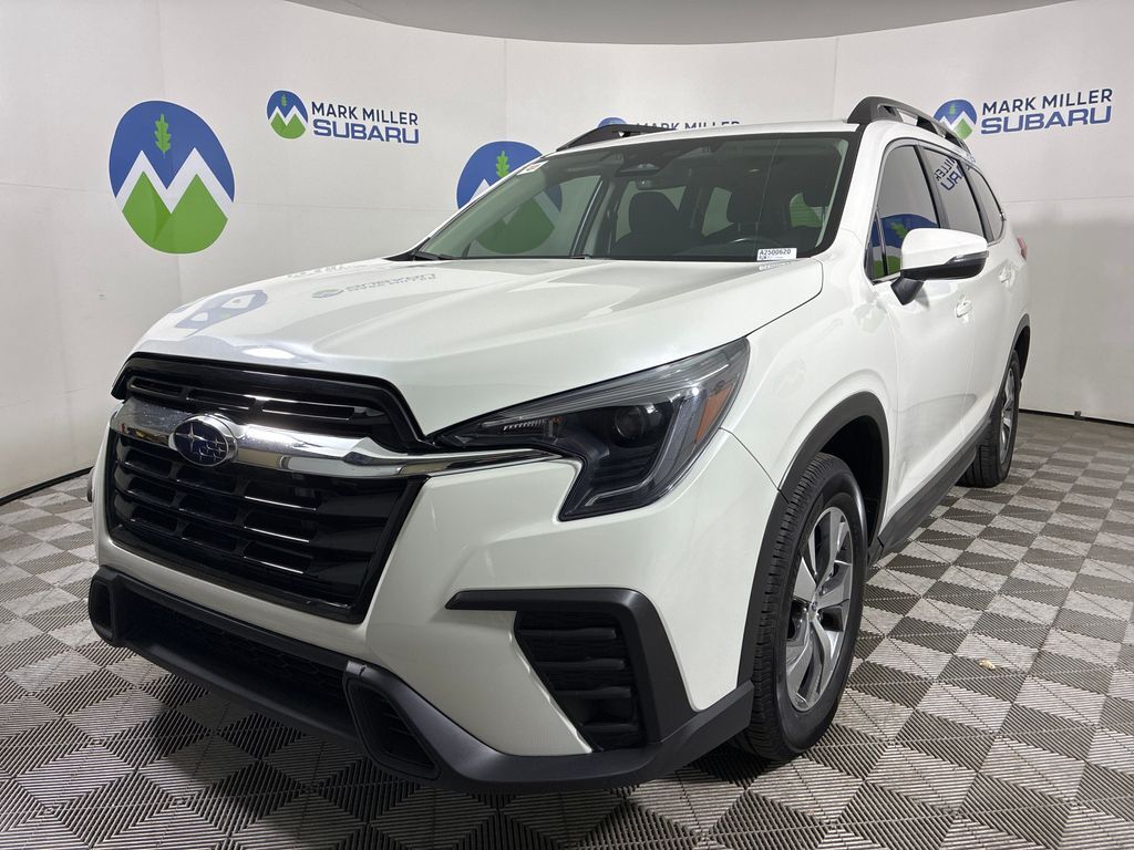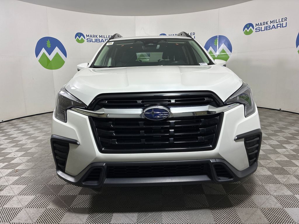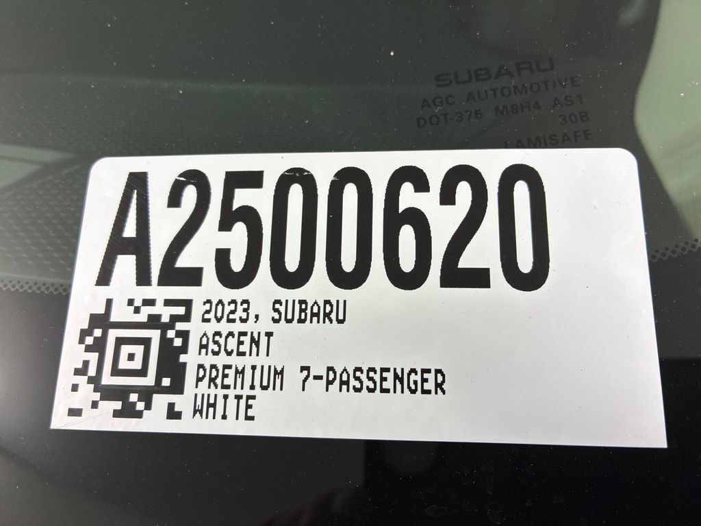 This 2023 Crystal White Pearl Subaru Ascent Premium AWD is well equipped and includes these features and benefits: Convenience Package (Auto-Dimming Rear View Compass Mirror w/HomeLink, Keyless Access w/Push-Button Start, Power Rear Gate w/Automatic Close & Height Memory, and Reverse Automatic Braking (RAB) System), 3rd Row Bench Rear Seatback Protector, 3rd row seats: bench, 4-Wheel Disc Brakes, 6 Speakers, ABS brakes, Air Conditioning, Alloy wheels, AM/FM radio: SiriusXM, Auto High-beam Headlights, Automatic temperature control, Axle Ratio: 4.44, Brake assist, Bumpers: body-color, Delay-off headlights, Driver door bin, Driver vanity mirror, Dual front impact airbags, Dual front side impact airbags, Electronic Stability Control, Emergency communication system: STARLINK Safety and Security (Subscription Required), Exterior Parking Camera Rear, Four wheel independent suspension, Front anti-roll bar, Front Bucket Seats, Front Center Armrest, Front dual zone A/C, Front reading lights, Fully automatic headlights, Heated door mirrors, Heated Front Bucket Seats, Heated front seats, Illuminated entry, Knee airbag, Leather Shift Knob, Leather steering wheel, Low tire pressure warning, Occupant sensing airbag, Outside temperature display, Overhead airbag, Overhead console, Panic alarm, Passenger door bin, Passenger vanity mirror, Power door mirrors, Power driver seat, Power steering, Power windows, Radio data system, Radio: Subaru STARLINK 11.6'' Multimedia Plus System, Rear air conditioning, Rear anti-roll bar, Rear reading lights, Rear window defroster, Rear window wiper, Reclining 3rd row seat, Remote keyless entry, Security system, Speed control, Speed-sensing steering, Spill Resistant Coated Cloth Upholstery, Split folding rear seat, Spoiler, STARLINK/Apple CarPlay/Android Auto, Steering wheel mounted audio controls, Tachometer, Telescoping steering wheel, Tilt steering wheel, Traction control, Trailer Hitch, Trip computer, Turn signal indicator mirrors, Variably intermittent wipers, and Wheels: 18'' x 7.5 J Gray Alloy w/Machine Finish.