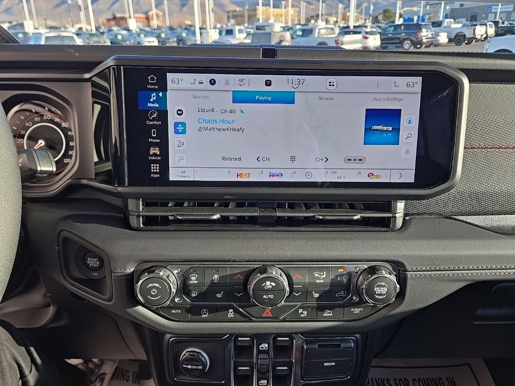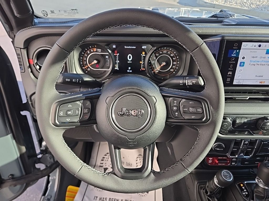 2026 Jeep Gladiator Rubicon anvil clearcoat 4D Crew Cab 3.6L V6 24V VVT 4WD 110 Mph Vehicle Max Speed Calibration, 12.3'' Touchscreen Display, 4-Wheel Disc Brakes, 4.10 Rear Axle Ratio, 4G LTE Wi-Fi Hot Spot, 8 Speakers, ABS brakes, Air Conditioning, Alexa Built-in, Alloy wheels, Alpine Premium Audio System, AM/FM radio: SiriusXM with 360L, Apple CarPlay, Apple CarPlay/Android Auto, Auto High Beam Headlamp Control, Automatic temperature control, Black 3-Piece Hard Top, Blind Spot and Cross Path Detection, Brake assist, Cloth Low-Back Bucket Seats, Compass, Connectivity - US/Canada, Convenience Group, Delay-off headlights, Driver door bin, Driver vanity mirror, Dual front impact airbags, Dual front side impact airbags, Electronic Stability Control, Emergency communication system: Jeep Connect, For Details, Visit DriveUconnect.com, Freedom Panel Storage Bag, Front anti-roll bar, Front Bucket Seats, Front Center Armrest w/Storage, Front dual zone A/C, Front fog lights, Front License Plate Bracket, Front reading lights, Fully automatic headlights, Google Android Auto, Heated door mirrors, Heated Front Seats, Heated Steering Wheel, Illuminated entry, Integrated Center Stack Radio, Integrated roll-over protection, Low tire pressure warning, Manufacturer's Statement of Origin, MOPAR All-Weather Slush Mats, MOPAR Performance Satin Black Grille, MOPAR Triple Hoop Grille Guard, Occupant sensing airbag, Outside temperature display, Overhead airbag, Panic alarm, ParkSense Rear Park Assist System, Passenger door bin, Passenger vanity mirror, Performance Suspension, Power Dome Dual Vented Hood, Power door mirrors, Power steering, Power windows, Quick Order Package 24R Rubicon, Radio data system, Radio: Uconnect 5 with 12.3'' Display, Rear anti-roll bar, Rear reading lights, Rear Sliding Window, Rear Window Defroster, Remote keyless entry, Remote Start System, Safety Group, Security system, SiriusXM Radio Service, SiriusXM with 360L, Speed control, Split folding rear seat, Steel Bumper Group, Steel Front Bumper, Steel Power Dome Hood Package, Steering wheel mounted audio controls, Tachometer, Telescoping steering wheel, Tilt steering wheel, Traction control, Trip computer, Universal Garage Door Opener, USB Host Flip, Variably intermittent wipers, Voltmeter, Wheels: 17'' x 7.5'' Machined/Painted Black.