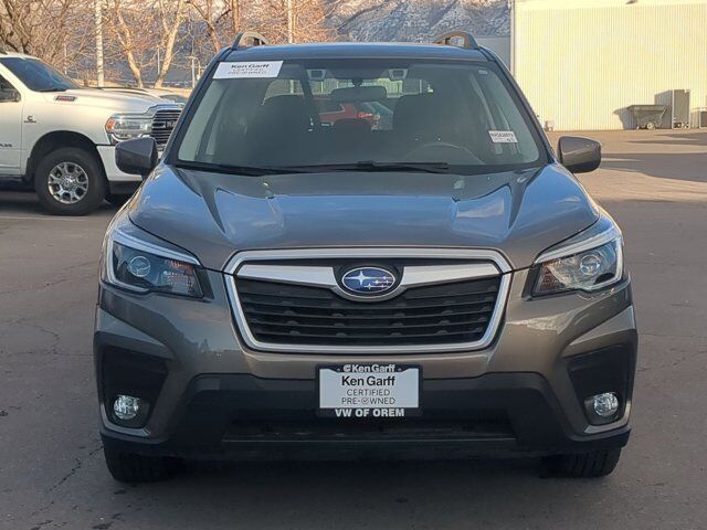Ken Garff Volkswagon is honored to offer this terrific-looking 2021 Subaru Forester Premium in Sepia Bronze Metallic.3.70 Axle Ratio, 4-Wheel Disc Brakes, 6 Speakers, ABS brakes, Air Conditioning, Alloy wheels, AM/FM radio: SiriusXM, Auto High-beam Headlights, Automatic temperature control, Brake assist, Bumpers: body-color, CD player, Cloth Upholstery, Driver door bin, Driver vanity mirror, Dual front impact airbags, Dual front side impact airbags, Electronic Stability Control, Emergency communication system: STARLINK Safety and Security (Subscription Required), Exterior Parking Camera Rear, Four wheel independent suspension, Front anti-roll bar, Front Bucket Seats, Front Center Armrest, Front fog lights, Front reading lights, Fully automatic headlights, Heated door mirrors, Heated Front Bucket Seats, Heated front seats, Illuminated entry, Knee airbag, Low tire pressure warning, Occupant sensing airbag, Outside temperature display, Overhead airbag, Overhead console, Panic alarm, Passenger door bin, Passenger vanity mirror, Power door mirrors, Power driver seat, Power moonroof: Panoramic, Power steering, Power windows, Radio data system, Radio: Subaru Starlink 6.5 Multimedia Plus System, Rear anti-roll bar, Rear seat center armrest, Rear window defroster, Rear window wiper, Remote keyless entry, Roof rack: rails only, Security system, Speed control, Speed-sensing steering, Split folding rear seat, Spoiler, Standard Model, STARLINK/Apple CarPlay/Android Auto, Steering wheel mounted audio controls, Tachometer, Telescoping steering wheel, Tilt steering wheel, Traction control, Trip computer, Variably intermittent wipers, Wheels: 17 x 7.0J Black Machine Finish Alloy. 26/33 City/Highway MPGBuy with Confidence at Ken Garff Volkswagen! All of our used vehicles go through a rigorous 150 point inspection by our master certified technicians. All of our prices are based off market conditions to be the best value for our customers! We are conveniently located at 115 E University Parkway in Orem, UT 84058. Just 1 Block west of University Mall. Additional Ken Garff VW benefits include: -- A Better Business Rating --Lifetime Garff Care. This includes roadside assistance and towing along the Wasatch Front for as long as you own your car. --Car Fax on every used vehicle. --No Hassle 3-Day Exchange on every new or used vehicle.
