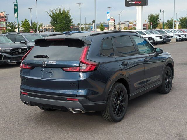 Ken Garff Honda is pumped up to offer this beautiful 2026 Honda CR-V Hybrid Sport Touring in Canyon River Blue Metallic. AWD Sport Touring eCVT2.0L I4 DOHC 16V, 12 Speakers, 4-Wheel Disc Brakes, ABS brakes, Adaptive Cruise Control: Adaptive Cruise Control (ACC) with Low-Speed Follow, Air Conditioning, Alloy wheels, AM/FM radio, Apple CarPlay/Android Auto, Auto High-beam Headlights, Auto-dimming Rear-View mirror, Automatic temperature control, Blind Spot Information (BSI) System warning, Bose Premium Sound System, Brake assist, Bumpers: body-color, Compass, Delay-off headlights, Driver door bin, Driver vanity mirror, Dual front impact airbags, Dual front side impact airbags, Electronic Stability Control, Exterior Parking Camera Rear, Four wheel independent suspension, Front anti-roll bar, Front Bucket Seats, Front Center Armrest, Front dual zone A/C, Front reading lights, Fully automatic headlights, Heated door mirrors, Heated Front Bucket Seats, Heated front seats, Heated steering wheel, Illuminated entry, Knee airbag, Leather Seat Trim, Leather Shift Knob, Leather steering wheel, Low tire pressure warning, Memory seat, Navigation system: Google Maps, Occupant sensing airbag, Outside temperature display, Overhead airbag, Overhead console, Panic alarm, Passenger door bin, Passenger vanity mirror, Power door mirrors, Power driver seat, Power Liftgate, Power moonroof, Power passenger seat, Power steering, Power windows, Radio data system, Rain sensing wipers, Rear anti-roll bar, Rear reading lights, Rear seat center armrest, Rear side impact airbag, Rear window defroster, Rear window wiper, Remote keyless entry, Security system, Speed control, Speed-sensing steering, Speed-Sensitive Wipers, Split folding rear seat, Spoiler, Steering wheel mounted audio controls, Telescoping steering wheel, Tilt steering wheel, Traction control, Trip computer, Turn signal indicator mirrors, Variably intermittent wipers, Wheels: 19 Berlina Black, 2.0L I4 DOHC 16V.40/34 City/Highway MPG Fuel Economy estimates are based on EPA mileage ratings. Actual mileage will vary depending on driving conditions, habits, vehicle maintenance, and other factors. Advertised Prices do not include any dealer installed options and advertised prices exclude leases.