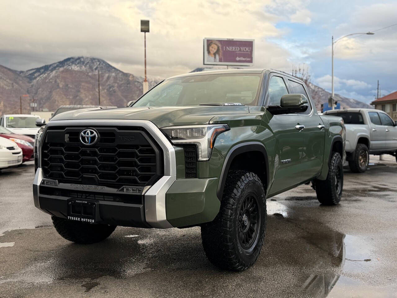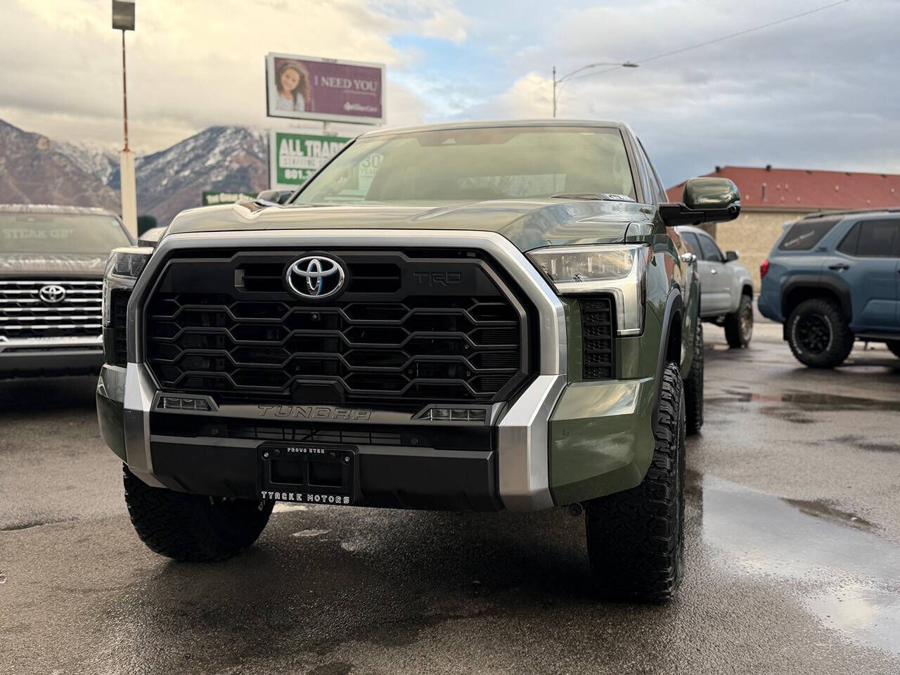 2022 Toyota Tundra Limited CrewMax 4×4 Hybrid – TRD Off-Road – Only 13K Miles! Rare Army Green • Limited Premium Package •TRD Off Road Package • Brand New 3.5 Inch RC Lift• Mint Condition - Pano Roof This is a stunning Southern California 2022 Toyota Tundra Limited Hybrid CrewMax 4×4 with just 13,000 original miles. Finished in the highly sought-after Army Green, equipped with the TRD Off-Road Package, and loaded with both the Limited Premium Package and the Limited Power Package, this truck is as rare as it is clean. Still looks, feels, and smells like new. No rust. No Utah winters. No nonsense — just a beautifully kept SoCal truck. Professionally fitted with a 3.5-inch lift done by the Pros at Ultimate 4x4 in Orem, UT. Brand-new 18-inch wheels, and 35-inch BFGoodrich KO3 tires, giving it the perfect stance without sacrificing ride quality. Absolutely mint condition inside, outside, and underneath. ⭐ Factory Features (Limited Hybrid TRD Off-Road Package) i-FORCE MAX 3.5L Twin-Turbo V6 Hybrid 437 HP • 583 lb-ft torque 4×4 with High & Low Range 10-speed automatic transmission TRD Off-Road tuned suspension TRD Off-Road skid plate TRD Off-Road badging Electronic locking rear differential Multi-Terrain Select & Crawl Control Leather-trimmed seating Heated & ventilated front seats 12.3 digital gauge cluster 14 Toyota Premium Audio touchscreen Apple CarPlay & Android Auto JBL premium sound (if included — can add if desired) Panoramic View Monitor / Backup camera Blind spot monitoring & parking sensors Smart Key with push-button start Power sliding rear window LED headlights & LED DRLs Factory Tow Package Limited Premium Package Limited Power Package (If you'd like, I can list those sub-options in detail.) ⭐ Upgrades & Additions Professionally installed 4-inch lift Brand-new 18-inch wheels 35-inch BFGoodrich KO3 All-Terrain tires Tinted windows Near-perfect body, interior, and undercarriage No scratches, no dings, no wear — truly mint 🧼 Condition This Army Green Tundra Hybrid is immaculate: Rust-free Southern California truck Like-new paint, body, and interior Underneath is spotless — no corrosion, no scale Interior still smells factory fresh Drives tight, smooth, powerful, and quiet Only 14K original miles — extremely hard to find in this spec This is one of the cleanest 2022 Limited Hybrid TRD Off-Road Tundras you will find anywhere. 🧾 History Southern California truck Only 14,000 miles No rust, no winters Exceptionally clean example Rare color rare package combo 📸 Photos & Video Full high-resolution photo gallery and 4K walkaround video will be available at: 👉 www.TyackeMotors.com 💰 Financing Credit union financing available right in our office. Fast approvals — no games, no add-ons, no nonsense. 🏁 Why Buy From Tyacke Motors? Family-owned for 42 years. We hand-select the cleanest West Coast vehicles on the market. We specialize in Tundras, Tacomas, 4Runners, GX, and Land Cruisers. If I wouldn’t park it in my own driveway, I won’t buy it. Tyacke Motors — Provo, Utah Call or text Stayton (owner) at 801-361-1928
