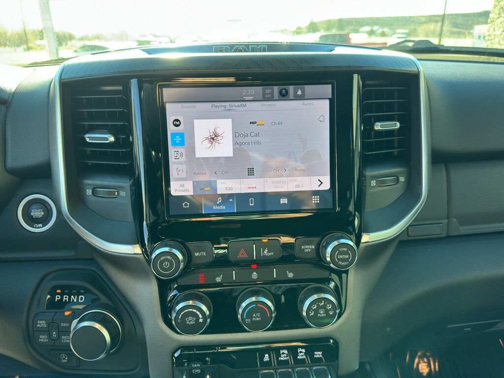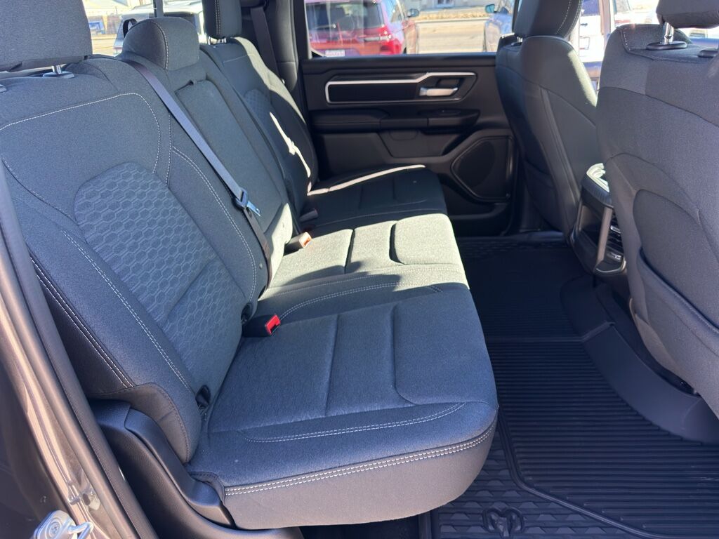 Quick Order Package 27Z Big Horn,Big Horn Level 1 Equipment Group: SiriusXM Radio Service; Rear Window Defroster; Rear View Auto Dim Mirror; Power Adjustable Pedals; Leather Wrapped Steering Wheel; Rear Power Sliding Window; Rear Dome with On/off Switch Lamp; Glove Box Lamp; Auto Power-Folding Mirrors; Exterior Mirrors with Heating Element; Auto Dim Exterior Driver Mirror; Heated Front Seats; Heated Steering Wheel; Black Premium Power Mirrors; SiriusXM Satellite Radio; 400W Inverter; Deluxe Cloth Bucket Seats; Exterior Mirrors with Supplemental Signals; Steering Wheel Mounted Audio Controls; Exterior Mirrors Courtesy Lamps; Body Color Fender Flares; 115V Auxiliary Power Outlet; Universal Garage Door Opener; 2nd Row in Floor Storage Bins; Convex Wide-Angle Exterior Mirror Insert; Sun Visors with Illuminated Vanity Mirrors,Night Edition: 275/55R20 OWL All Season Tires; Accent Color Premium Power Mirrors; Exterior Mirrors with Supplemental Signals; Black Headlamp Bezels; Exterior Mirrors Courtesy Lamps; Grille Black Surround Black Mesh; Auto Power-Folding Mirrors; Exterior Mirrors with Heating Element; 20" X 9.0" Aluminum Painted Clad Wheels; Auto Dim Exterior Driver Mirror; Black Exterior Truck Badging; Anti-Spin Differential Rear Axle; Accent Color Door Handles; Accent Color Tailgate Handle; Black Interior Accents; Dual Exhaust with Black Tips; Body Color Front Bumper; Convex Wide-Angle Exterior Mirror Insert; Body Color Rear Bumper with Step Pads; Black Tail Lamp Bezels; RAM Grille Badge - Black; Black Painted Exterior Mirrors Caps,Quick Order Package 23Z Big Horn,Anti-Spin Differential Rear Axle,Trailer Brake Control,Granite Crystal Met CC,MOPAR Front and Rear Rubber Floor Mats,3.92 Rear Axle Ratio,Forward Collision Warning-Plus,Blind Spot Detection,Keyfob remote start,Heated steering wheel,Uconnect w/Bluetooth handsfree wireless device connectivity,Apple CarPlay/Android Auto smart device wireless mirroring,Heated driver and front passenger seats,Premium cloth front seat upholstery,Driver seat with 8-way directional controls,Front passenger seat with 4-way directional controls,8.4 inch primary display,Pedestrian Emergency Braking,4G LTE Wi-Fi Hot Spot mobile hotspot internet access,ParkView rear mounted camera,Active Lane Management System,Adaptive cruise control with stop and go,Brake Assist predictive brake assist system,Cruise control with steering wheel mounted controls,Primary monitor touchscreen,Cross Path Detection collision warning,Part-time 4WD,HEMI 5.7L V-8 variable valve control, regular unleaded, engine with cylinder deactivation and 395HP,HEMI 5.7L V-8,Smart device remote start,Push-button,Active aerodynamics,Bluetooth wireless audio streaming,Following distance alert,Smart key with push button start,Auto high-beam headlights,Sentry Key immobilizer,Active noise cancellation,Trailer brake controller,Trailer sway control,External memory control,Internet radio capability,5 USB ports,Electronic stability control system with anti-roll,Hill Start Assist,Rear Seat Reminder Alert rear seat check warning,ParkSense front and rear parking sensors,LED daytime running lights,LED front fog lights,Leather steering wheel,Easy lower tailgate,Active grille shutters,Trailer hitch light,Manual rear child safety door locks,RAM Connect App mobile app access,Regenerative brakes