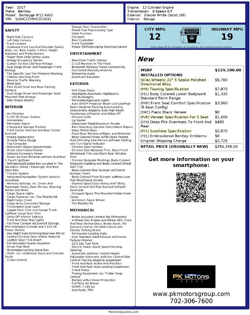 ABSOLUTELY Gorgeous Car Dressed in 'Glacier White' Exterior on 'Beluga- Black' Leather Interior! Super Clean- check out ALL 99 pictures! HARD Loaded and Highly Optioned- Original MSRP $254,335! MONSTROUS W12 Engine! Recently Serviced and THOROUGHLY inspected- Not a single problem. Clean Title and Carfax- no accident. BRAND New Tires. All scheduled maintenance performed on time by Bentley Dealership. OPTIONS: Touring, Front Seat Comfort, Veneer and Sunshine Specification. Navigation, Heads Up Display, Night Vision, Traffic Assistance, Adaptive Cruise Control, Lane Assistance, Piano Black Veneer, Back Up/ Reverse Camera with 360 Top View , Heated/ Cooled and Massage Seats, Heated Steering Wheel, Embroidered Headrests etc. Comes with Original Owner's manuals, Original MSRP Window Sticker, Two Sets of Keys and Qualifies for an Extended Warranty up to an additional 60 Months/ 100k Miles.