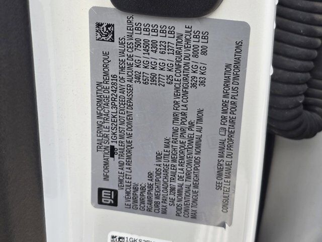 ENGINE 6.2L ECOTEC3 V8 with Dynamic Fuel Management Direct Injection and Variable Valve Timing includes aluminum block construction (420 hp [313 kW] @ 5600 rpm 460 lb-ft of torque [624 Nm] @ 4100 rpm) (STD),Cruise Control,Rear Parking Aid,Telematics,Back-Up Camera,Lane Departure Warning,Automatic Parking,Lane Keeping Assist,Adaptive Cruise Control,Front Collision Mitigation,Front Collision Warning,Requires Subscription,Cruise Control Steering Assist,Driver Monitoring,Rear Collision Mitigation,Blind Spot Monitor,Locking/Limited Slip Differential,Active Suspension,Keyless Start,Locking/Limited Slip Differential,Four Wheel Drive,Tow Hitch,Active Suspension,Air Suspension,Power Steering,ABS,4-Wheel Disc Brakes,Rear Collision Mitigation,Chrome Wheels,Tires - Front Performance,Tires - Rear Performance,Wheel Locks,Conventional Spare Tire,Conventional Spare Tire,Sun/Moonroof,Generic Sun/Moonroof,Panoramic Roof,Luggage Rack,Running Boards/Side Steps,Power Retractable Running Boards,Fog Lamps,Heated Mirrors,Power Mirror(s),Integrated Turn Signal Mirrors,Power Folding Mirrors,Privacy Glass,Intermittent Wipers,Variable Speed Intermittent Wipers,Rain Sensing Wipers,Remote Trunk Release,Power Liftgate,AM/FM Stereo,MP3 Capability,Bluetooth Connection,Auxiliary Audio Input,Smart Device Integration,MP3 Capability,Bluetooth Connection,Auxiliary Audio Input,Premium Sound System,Satellite Radio,Requires Subscription,WiFi Hotspot,Bucket Seats,Leather Seats,Mirror Memory,Seat Memory,Bucket Seats,Rear Bucket Seats,3rd Row Seat,Pass-Through Rear Seat,Heated Front Seat(s),Leather Seats,Heated Front Seat(s),Cooled Front Seat(s),Heated Rear Seat(s),Power Driver Seat,Power Passenger Seat,Driver Adjustable Lumbar,Passenger Adjustable Lumbar,Seat-Massage,Floor Mats,Adjustable Steering Wheel,Leather Steering Wheel,Heated Steering Wheel,Cruise Control,Steering Wheel Audio Controls,Front Collision Warning,Heads-Up Display,Bluetooth Connection,Smart Device Integration,Power Windows,Power Windows,Power Windows,Power Door Locks,Keyless Entry,Power Door Locks,Remote Engine Start,Cruise Control,Adaptive Cruise Control,Universal Garage Door Opener,MP3 Capability,Auxiliary Audio Input,Climate Control,Multi-Zone A/C,A/C,Rear A/C,A/C,Rear A/C,Rear Defrost,Security System,Security System,Auto-Dimming Rearview Mirror,Back-Up Camera,Driver Vanity Mirror,Passenger Vanity Mirror,Driver Illuminated Vanity Mirror,Passenger Illuminated Visor Mirror,Brake Assist,Front Collision Mitigation,Front Collision Warning,Traction Control,Stability Control,Brake Assist,Automatic Highbeams,Daytime Running Lights,Driver Air Bag,Passenger Air Bag,Front Side Air Bag,Front Head Air Bag,Rear Head Air Bag,Passenger Air Bag Sensor,Telematics,Requires Subscription,Telematics,Requires Subscription,Front Collision Mitigation,Rear Parking Aid,Automatic Parking,Cross-Traffic Alert,Front Collision Warning,Back-Up Camera,Aerial View Display System,Blind Spot Monitor,Security System,Child Safety Locks,Driver Restriction Features,Tire Pressure Monitor