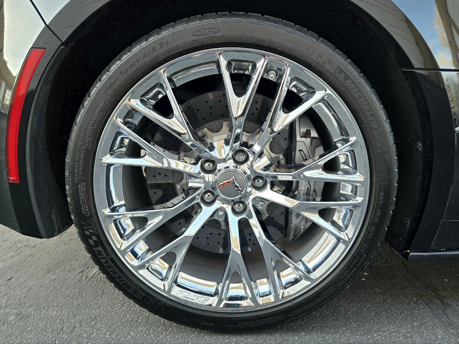 **Z06 Chrome Aluminum Wheels:**19" front / 20" rear staggered setup.