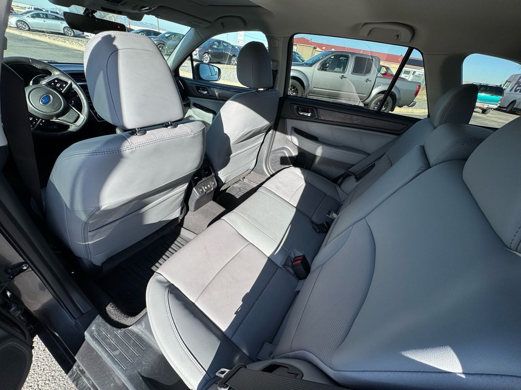 Leather Seats,Seating capacity: 5,Rear seats fixed or removable: Fixed rear seats,Reclining rear seats: Manual reclining rear seats,Rear seats: Rear bench seat,Heated rear seats: Heated rear seats,Rear seat folding position: Fold forward rear seatback,Folding rear seats: 60-40 folding rear seats,Rear head restraints: Height adjustable rear seat head restraints,Rear head restraint control: Manual rear seat head restraint control,Rear head restraint control: 3 rear seat head restraints,Front seatback upholstery: Plastic front seatback upholstery,Door trim insert: Leatherette door trim insert,Headliner material: Cloth headliner material,Headliner coverage: Full headliner coverage,Floor covering: Full carpet floor covering,Panel insert: Simulated wood and metal-look instrument panel insert,Gearshifter material: Leather and metal-look gear shifter material,Door panel insert: Simulated wood and metal-look door panel insert,Console insert material: Simulated wood and metal-look console insert,Interior accents: Chrome interior accents,Rear seatback upholstery: Carpet rear seatback upholstery,Climate control: Automatic climate control,Air conditioning: Yes,Dual-zone front climate control: Dual-zone front climate control,Cabin air filter: Cabin air filter,Rear under seat ducts: Rear under seat climate control ducts,Voice activated climate control: Voice-activated climate control,Rear console climate control ducts: Rear console climate control ducts,Steering wheel material: Leather and metal-look steering wheel,Steering wheel tilt: Manual tilting steering wheel,Steering wheel telescopic: Manual telescopic steering wheel,Tinted windows: Deep tinted windows,Laminated window: Laminated side window glass,Armrests rear: Rear seat center armrest,Armrests front center: Front seat center armrest,Armrests front storage: Front seat armrest storage,Floor coverage: Full floor coverage,Passenger doors rear left: Conventional left rear passenger door,Door mirrors: Power door mirrors,Rear cargo door: Power liftgate rear cargo door,Heated door mirrors: Heated driver and passenger side door mirrors,Passenger doors rear right: Conventional right rear passenger door,Visor driver mirror: Driver visor mirror,Visor illuminated driver mirror: Illuminated driver visor mirror,Visor passenger mirror: Passenger visor mirror,Visor illuminated passenger mirror: Illuminated passenger visor mirror,Beverage holders: Front beverage holders,Rear seat direction: Front facing rear seat,Floor console: Full floor console,Floor console storage: Covered floor console storage,Overhead console: Mini overhead console,Overhead console storage: Overhead console storage,Glove box: Illuminated locking glove box,Number of beverage holders: 6 beverage holders,Door bins front: Driver and passenger door bins,Door bins rear: Rear door bins,Cargo floor type: Carpet cargo area floor,Trunk lid trim: Plastic trunk lid trim,Cargo mats: Vinyl/rubber cargo mat,Cargo tie downs: Cargo area tie downs,Cargo light: Cargo area light,Concealed cargo storage: Cargo area concealed storage,Steering mounted audio control: Steering wheel mounted audio controls,Cruise control: Cruise control with steering wheel mounted controls,Adaptive cruise control: EyeSight Adaptive Cruise Control,Cargo access: Power cargo area access release,Fuel door: Manual fuel door release,Trunk hatch: Trunk/hatch auto-latching,Driver foot rest: Driver foot rest,Accessory power: Retained accessory power,Garage door opener: Garage door opener,12V power outlets: 3 12V power outlets,Door locks: Power door locks with 2 stage unlocking,Keyfob keyless entry: Keyfob keyless entry,All-in-one key: All-in-one remote fob and ignition key,Auto door locks: Auto-locking doors,Fob engine controls: Smart key with hands-free access and push button start,Valet key: Valet key,Tailgate control: Tailgate/power door lock,Keyfob cargo controls: Keyfob trunk control,Tachometer: Tachometer,Engine/electric motor temperature gauge: Engine/electric motor temperature gauge,Clock: Digital clock,Temperature display: Exterior temperature display,Speedometer: Redundant digital speedometer,Folding door mirrors: Manual folding door mirrors,Engine temperature warning: Engine temperature warning,Battery charge warning: Battery charge warning,Low level warnings: Low level warning for oil fuel, washer fluid and brake fluid,Key in vehicle warning: Key in vehicle warning,Door ajar warning: Rear cargo area ajar warning,Oil pressure warning: Oil pressure warning,Transmission fluid temperature warning: Transmission fluid temp warning,First-row windows: Power first-row windows,Third-row windows: Fixed third-row windows,Second-row windows: Power second-row windows,One-touch down window: Driver and passenger one-touch down windows,One-touch up window: Driver and passenger one-touch up windows,Wipers: Variable intermittent front windshield wipers,Sun visor strip: Sun visor strip,Heated wiper area: Heated rear wiper park,Rear window defroster: Rear window defroster,Rear windshield: Fixed rear windshield,Beverage holders rear: Rear beverage holders,Day/Night rearview mirror: Day/Night rearview mirror,Rear windshield wipers: Rear windshield wipers,Maximum roof rack load: 150 lbs. maximum roof rack load,Variable panel light: Variable instrument panel light,Headlights on reminder: Headlights on reminder,Illuminated glove box: Illuminated glove box,Trip odometer: Trip odometer,Over the air updates: Over the air updates,Ignition type: Push-button,Basic warranty: 36 month/36 000 miles,Powertrain warranty: 60 month/60 000 miles,Corrosion perforation warranty: 60 month/unlimited,Roadside warranty: 36 month/36 000 miles,Electronic stability control: Electronic stability control system,Brake type: 4-wheel disc brakes,ABS Brakes: 4-wheel antilock (ABS) brakes,Brake assist system: Brake assist system,Headlight type: Projector beam headlights,Headlights: Halogen headlights,Auto headlights: Auto on/off headlight control,Running lights: LED daytime running 