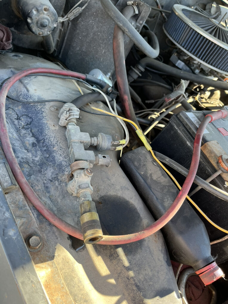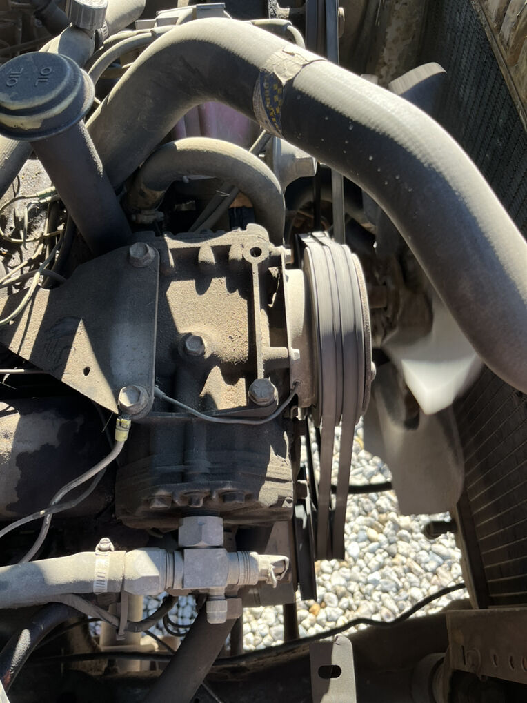 On-board air via converted Motorcraft A/C compressor (York-style setup).