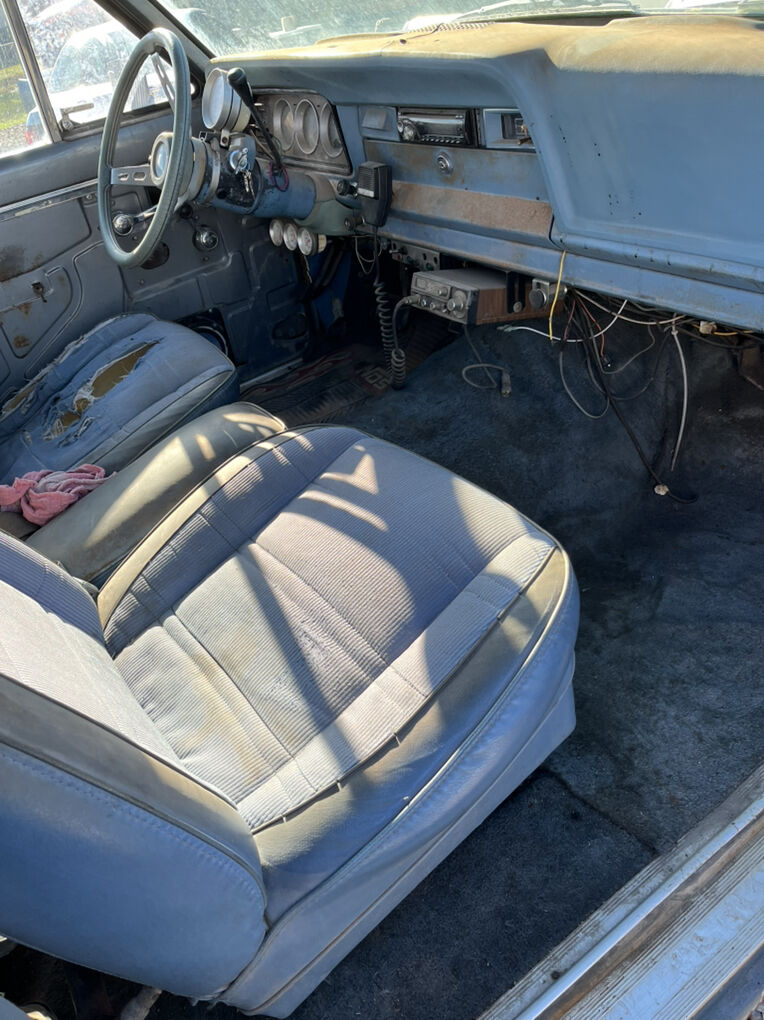 Interior is usable but tired. Driver’s seat is broken and needs replacement; front door panels are missing.