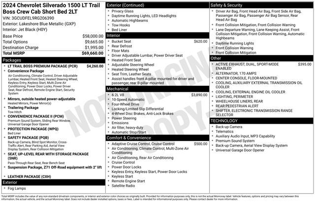 2024 Chevrolet Silverado 1500 LT Trail Boss Lakeshore Blue Metallic 4WD 10-Speed Automatic EcoTec3 6.2L V8