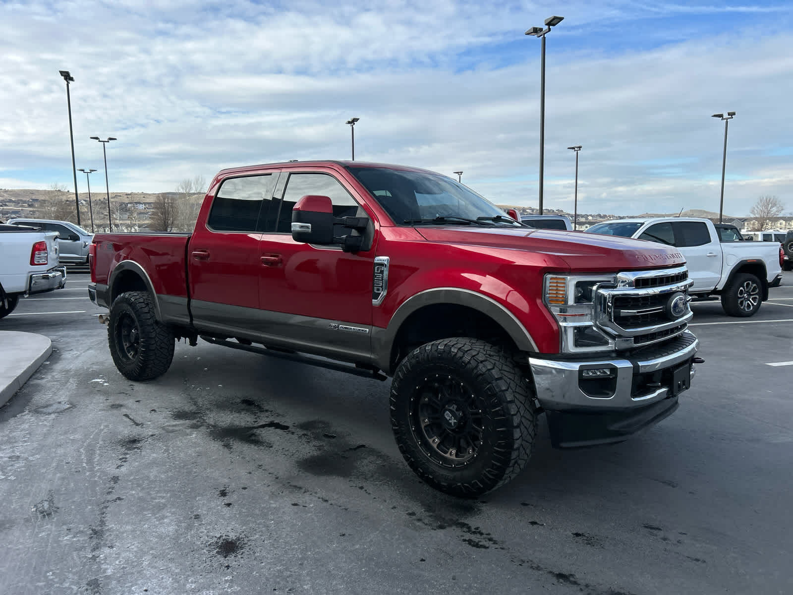 ENGINE: 6.7L 4V OHV POWER STROKE V8 TURBO DIESEL B20 manual push-button engine-exhaust braking and intelligent oil-life monitor, 240 Amp Alternator, 34 Gallon Fuel Tank, GVWR: 11,500 lb Payload Package, 3.31 Axle Ratio, Dual 78-AH 750 CCA Batteries, LARIAT ULTIMATE PACKAGE Power Heated/Ventilated Driver Seat w/Memory, PowerScope Trailer Tow Mirrors w/Memory, EASY ENTRY®/Exit Memory Drivers Seat Feature, Tailgate Step & Handle, LED Box Lighting, LED Center High-Mounted Stop Lamp (CHMSL), Intelligent Access w/Push-Button Start, Power Heated/Ventilated Passenger Seat, Voice-Activated Touchscreen Navigation System, pinch-to-zoom capability, SiriusXM Radio Traffic and Travel Link, Note: SiriusXM Traffic and Travel Link includes a, SiriusXM Traffic and Travel Link services are not available in Alaska and Hawaii, After your trial period ends, SiriusXM audio and data services each require a subscription sold separately, or as a package, by SiriusXM Radio Inc, See SiriusXM customer agreement for complete terms at, PRO TRAILER BACKUP ASSIST Ultimate Trailer Tow Camera System, rear view camera, 360 degree camera system, rear CHMSL camera, trailer reverse guidance and LED center high-mounted stop lamp, WHEELS: 20 BRIGHT MACHINED CAST ALUMINUM magnetic painted pockets and bright hub covers/center ornaments, QUAD BEAM LED HEADLAMPS & LED TAILLAMPS LED fog lamps and LED Center High-Mounted Stop Lamp (CHMSL), TOUGH BED SPRAY-IN BEDLINER tailgate-guard, black box bed tie-down hooks and black bed attachment bolts, ELECTRONIC-LOCKING W/3.31 AXLE RATIO, TRANSMISSION: TORQSHIFT 10-SPEED AUTOMATIC SelectShift and selectable drive modes: normal, tow/haul, eco, deep sand/snow and slippery (STD).