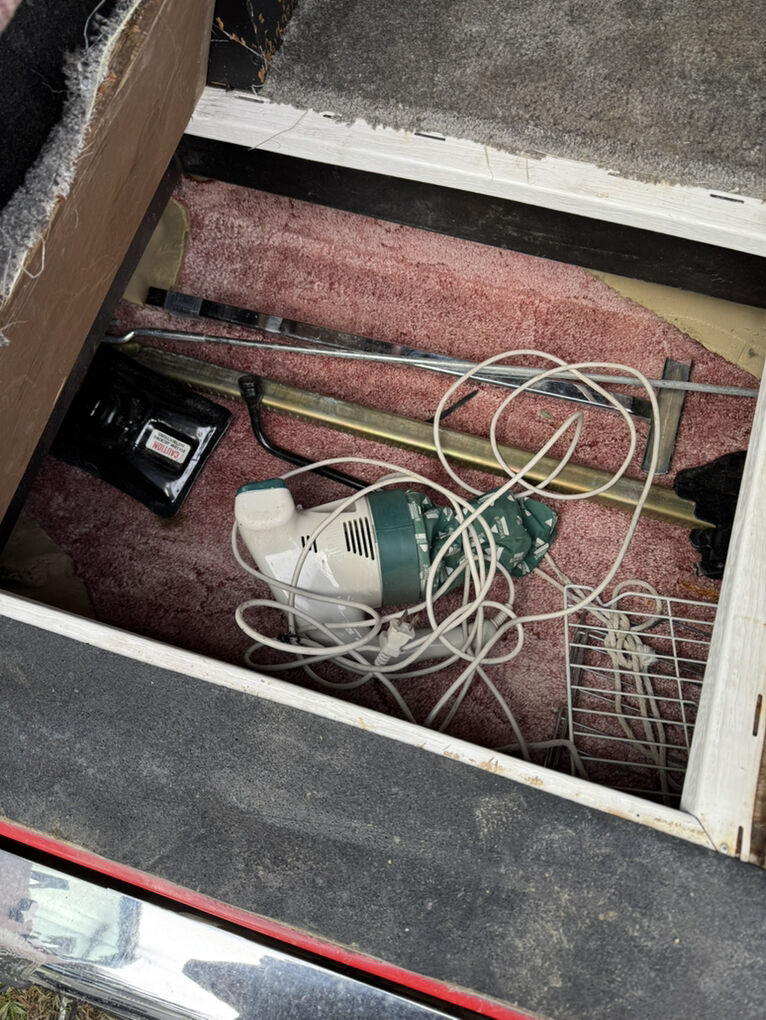 Exterior is in near-perfect condition for its age. Interior is near complete and original with dinette/bed, cabinets, sink/fridge area, toilet, on board generator, on board propane, and high-top roof. Interior shows normal wear but is in really nice condition. Nothing missing and very usable as-is. Started to make it nicer than what it was but just don’t have room or time.