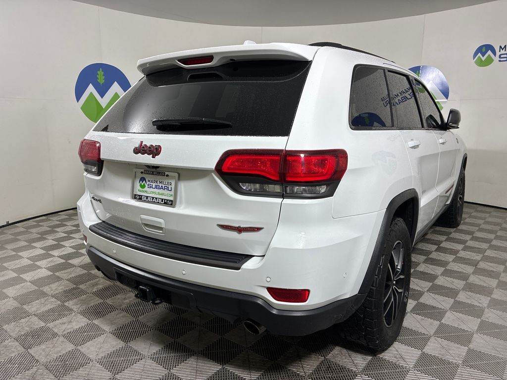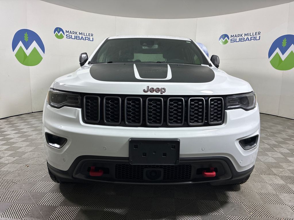 This 2021 Bright White Clearcoat Jeep Grand Cherokee Trailhawk 4WD is well equipped and includes these features and benefits: Premium Lighting Group (Auto High Beam Headlamp Control, Bi-Xenon High-Intensity Discharge Headlamps, Front LED Fog Lamps, and LED Daytime Running Headlamps), Protech II (Adaptive Cruise Control w/Stop, Advanced Brake Assist, Full Speed FWD Collision Warn Plus, Lane Departure Warning Plus, Parallel & Perp Park Assist w/Stop, and Rain Sensitive Windshield Wipers), Quick Order Package 22J, Trailhawk Luxury Group (Cargo Compartment Cover, Dual-Pane Panoramic Sunroof, Power Tilt/Telescope Steering Column, and Trailhawk Leather Trim Seats w/Perforation), 4WD, 1-Year SiriusXM Guardian Trial, 10 Speakers, 230MM Rear Axle, 3.09 Rear Axle Ratio, 3.45 Rear Axle Ratio, 4-Wheel Disc Brakes, 4G LTE Wi-Fi Hot Spot, 8.4'' Touchscreen Display, ABS brakes, Air Conditioning, Alloy wheels, AM/FM radio: SiriusXM, Anti-whiplash front head restraints, Apple CarPlay, Apple CarPlay/Android Auto, Audio memory, Auto-dimming door mirrors, Auto-dimming Rear-View mirror, Auto-leveling suspension, Automatic temperature control, Brake assist, Bumpers: body-color, Compass, Delay-off headlights, Driver door bin, Driver vanity mirror, Dual front impact airbags, Dual front side impact airbags, Electronic Stability Control, Emergency communication system: SiriusXM Guardian, Four wheel independent suspension, Front anti-roll bar, Front Bucket Seats, Front Center Armrest w/Storage, Front dual zone A/C, Front fog lights, Front reading lights, Fully automatic headlights, Garage door transmitter, Google Android Auto, GPS Antenna Input, GPS Navigation, HD Radio, Heated door mirrors, Heated front seats, Heated rear seats, Heated steering wheel, Illuminated entry, Integrated Voice Command w/Bluetooth, Knee airbag, Leather Shift Knob, Low tire pressure warning, Memory seat, Navigation System, Normal Duty Suspension - Increased Travel, Occupant sensing airbag, Outside temperature display, Overhead airbag, Overhead console, Panic alarm, ParkView Rear Back-Up Camera, Passenger door bin, Passenger vanity mirror, Power door mirrors, Power driver seat, Power Liftgate, Power moonroof, Power passenger seat, Power steering, Power windows, Radio data system, Radio: Uconnect 4C Nav w/8.4'' Display, Rear anti-roll bar, Rear reading lights, Rear seat center armrest, Rear window defroster, Rear window wiper, Remote keyless entry, Roof rack: rails only, Security system, SiriusXM Satellite Radio, SiriusXM Traffic Plus, SiriusXM Travel Link, Speed control, Speed-sensing steering, Speed-Sensitive Wipers, Split folding rear seat, Spoiler, Steering wheel mounted audio controls, Tachometer, Telescoping steering wheel, Tilt steering wheel, Traction control, Trailhawk Leather/Suede Seats, Trip computer, Turn signal indicator mirrors, Variably intermittent wipers, Ventilated front seats, Voltmeter, and Wheels: 18'' x 8.0'' Off Road Aluminum.
