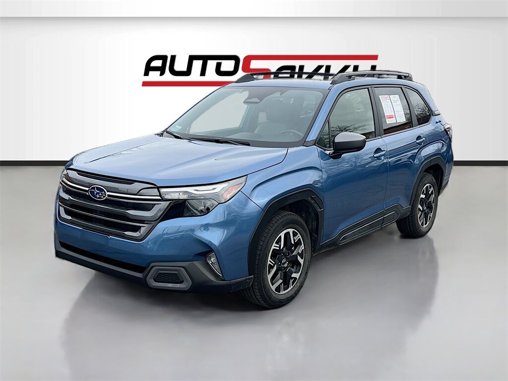 Unveil the 2025 Subaru Forester Premium AWD at AutoSavvy Woods Cross, a blend of innovation and practicality perfect for any adventure. With only 19,369 miles, this certified gem promises reliability and performance. Its 2.5L H-4 engine, delivering 180 horsepower, ensures a smooth and efficient drive, achieving up to 33 MPG on the highway. The Horizon Blue Pearl exterior is as captivating as it is practical, complemented by a premium gray cloth interior. Enjoy the convenience of a panoramic sunroof, heated front seats, and an 11.6-inch touchscreen with Apple CarPlay and Android Auto integration. Safety is a priority with features like adaptive cruise control, lane departure warning, and a blind spot monitor, ensuring peace of mind on every journey. The current status of the title is unknown, highlighting AutoSavvy's commitment to transparency and quality assurance. Each vehicle undergoes a meticulous inspection to meet the highest standards of reliability and performance. Visit AutoSavvy Woods Cross today to experience the 2025 Subaru Forester Premium AWD, where technology, safety, and adventure converge to redefine your driving experience. Discover the AutoSavvy difference, where quality and value are at the heart of every vehicle we offer.