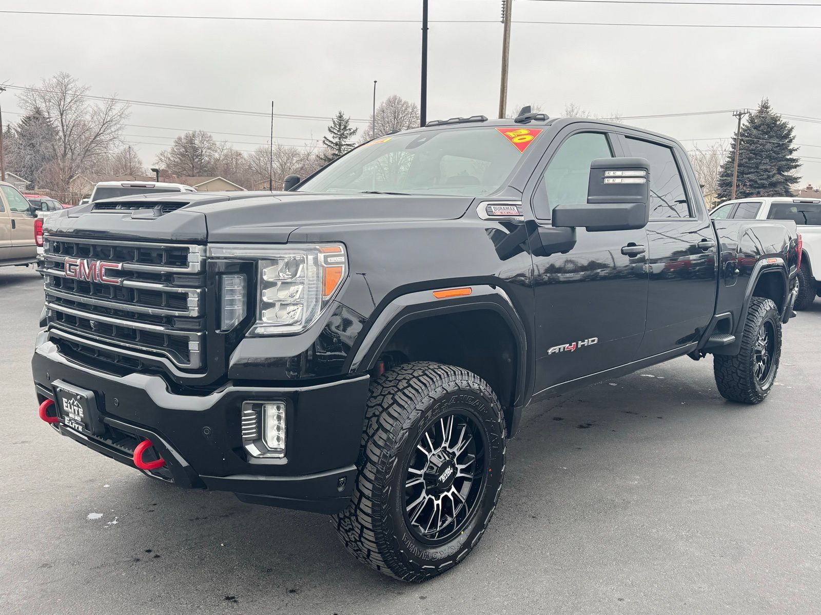 Onyx Black 2020 GMC Sierra 3500HD AT4 4D Crew Cab 2020 10-Speed Automatic, 4WD, Jet Black With Kalahari Accents Leather, 12-Volt Rear Auxiliary Power Outlet, 120-Volt Bed Mounted Power Outlet, 120-Volt Instrument Panel Power Outlet, 2 USB Ports (First Row), 2 USB Ports Inside Console, 2-Speed Active Transfer Case, 2nd Row Dual USB Charge-Only Ports, 2nd Row Heated Outboard Seats, 4.2'' Diagonal Color Display Driver Info Center, 4G LTE Wi-Fi Hotspot Capable, 8'' Driver Information Center, All-Weather Floor Liners w/AT4 Logo (LPO), AT4 Preferred Package, AT4 Premium Package, Auto-Dimming Inside Rearview Mirror w/Camera, Automatic Emergency Braking, Bed View Camera, Bose Premium 7 Speaker Sound System, Compass Located In Instrument Cluster, Deep-Tinted Glass, Driver Alert Package I, Driver Alert Package II, Electric Rear-Window Defogger, Electrical Lock Control Steering Column, Floor-Mounted Center Console, Following Distance Indicator, Forward Collision Alert, GMC Connected Access Capable, HD Rear Vision Camera, HD Surround Vision w/2 Trailer View Camera Provisions, Heated Driver & Front Outboard Passenger Seats, Hill Descent Control, Hitch Guidance w/Hitch View, In-Vehicle Trailering System App, Integrated Trailer Brake Controller, IntelliBeam Automatic High Beam On/Off, Keyless Open & Start, Lane Change Alert w/Side Blind Zone Alert, Lane Departure Warning System, LED Cargo Area Lighting, Manual Tilt-Wheel/Telescoping Steering Column, Multicolor 15'' Diagonal Head-Up Display, OnStar & GMC Connected Services Capable, Painted Blk Surround Grille w/High Gloss Blk Mesh, Perimeter Lighting, Power Door Locks, Power Front Passenger Windows w/Express Up/Down, Power Front Windows w/Driver Express Up/Down, Power Rear Windows w/Express Down, Power Sliding Rear Window w/Defogger, Preferred Equipment Group 4SB, ProGrade Trailering System, Radio: AM/FM w/Prem GMC Infotainment System & Navi, Rear Cross Traffic Alert, Rear Wheelhouse Liners, Red Recovery Hooks, Remote Vehicle Starter System, Safety Alert Seat, Spray-On Pickup Bed Liner w/AT4 Logo, Steering Wheel Audio Controls, Technology Package, Ultrasonic Front & Rear Park Assist, Unauthorized Entry Theft-Deterrent System, Universal Home Remote, Ventilated Driver & Fr