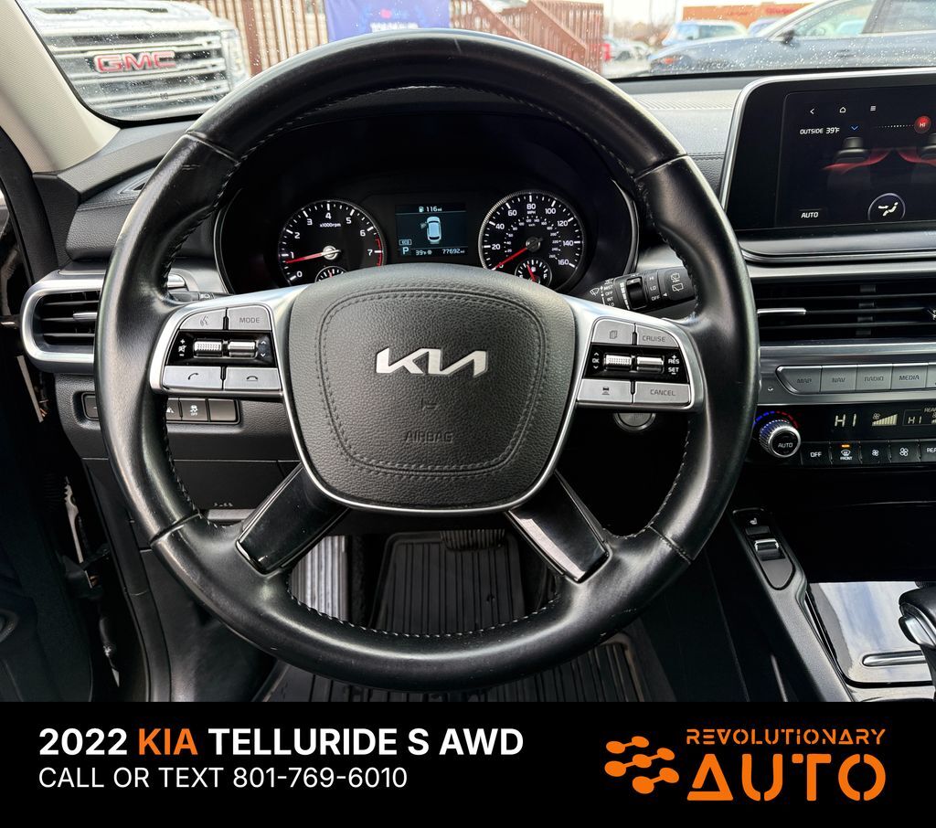 The exterior stands out with stylish alloy wheels, LED lighting, and a bold, modern design. Advanced safety features such as blind-spot monitoring, rear cross-traffic alert, lane-keeping assist, and forward collision-avoidance systems add confidence behind the wheel. Well maintained and nicely equipped, this 2022 Kia Telluride S is an excellent choice for families or anyone seeking a reliable, versatile, and comfortable SUV. MILEAGE: 77,211
