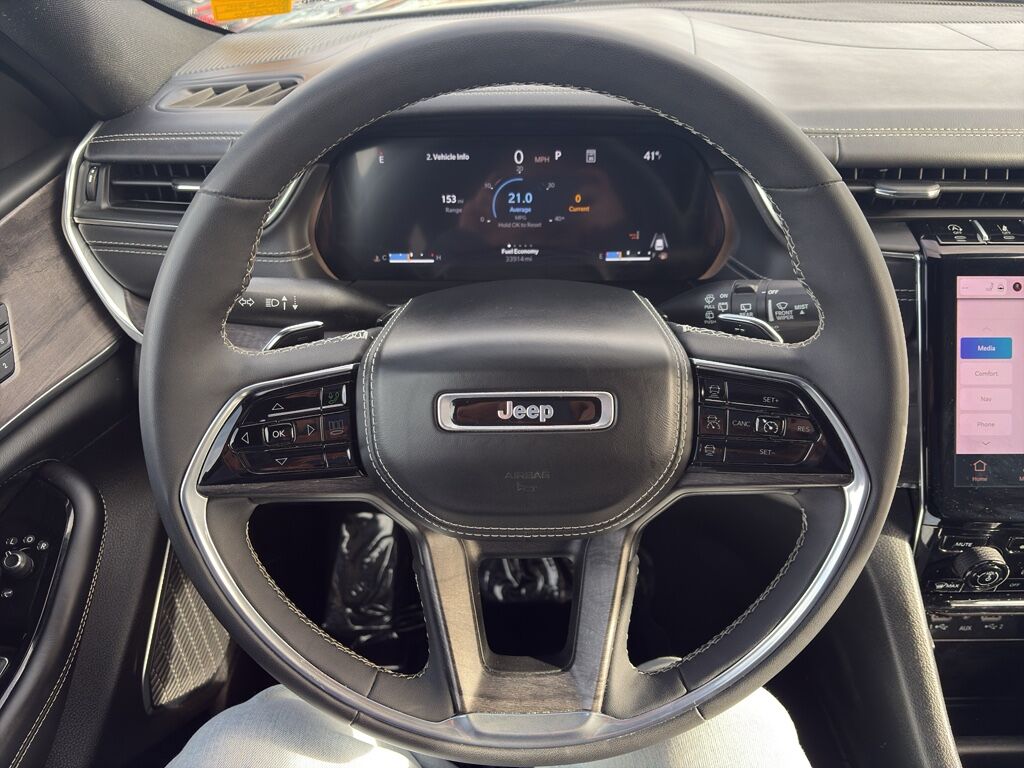 Keep your hands warm all winter with a heated steering wheel in the Jeep Grand Cherokee . This model comes equipped with Android Auto for seamless smartphone integration on the road. Protect this Jeep Grand Cherokee from unwanted accidents with a cutting edge backup camera system. Good News! This certified CARFAX 1-owner vehicle has only had one owner before you. Never get into a cold vehicle again with the remote start feature on the vehicle. Apple CarPlay: Seamless smartphone integration for this 2023 Jeep Grand Cherokee - stay connected and entertained on the go! This mid-size suv has auto-adjust speed for safe following. This vehicle's Forward Collision Warning feature alerts drivers to potential front-end collisions. Bluetooth technology is built into this vehicle, keeping your hands on the steering wheel and your focus on the road. You'll never again be lost in a crowded city or a country region with the navigation system on it.