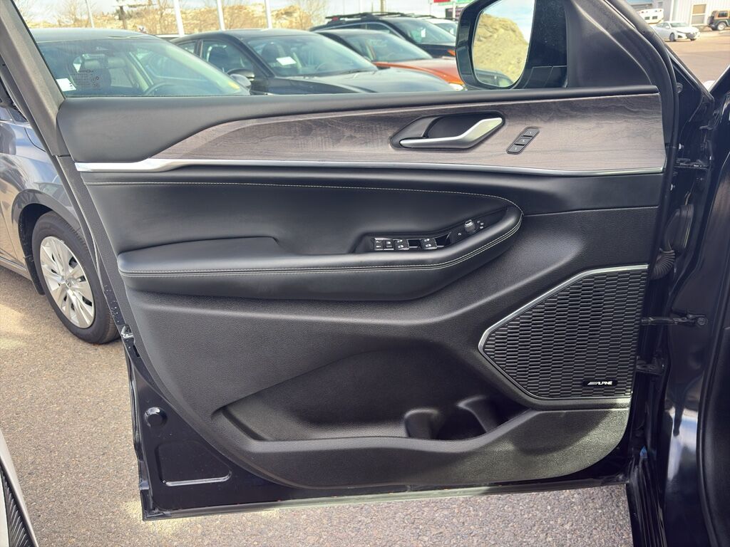 Quick Order Package 23N,Midnight Sky,Midnight Sky,Keyfob window control,Power liftgate rear cargo door,Ventilated driver and front passenger seats,Integrated navigation system with voice activation,Blind Spot Detection,Keyfob remote start,Heated steering wheel,Uconnect w/Bluetooth handsfree wireless device connectivity,Wireless Apple CarPlay/Android Auto smart device wireless mirroring,Heated driver and front passenger seats,10 USB ports,First and second-row sliding and tilting glass sunroof with express open/close activation sunshade,Nappa leather front seat upholstery,Driver seat with 8-way directional controls,Front passenger seat with 8-way directional controls,Keyfob trunk control,10.1 inch primary display,Full Speed Forward Collision Warning Plus,Pedestrian/Cyclist Emergency Braking,4G LTE Wi-Fi Hot Spot mobile hotspot internet access,ParkView w/Trailer Hitch Zoom rear mounted camera,Active Lane Management,Cross Path Detection collision mitigation,Adaptive Cruise Control w/Stop & Go,Predictive brake assist system,Cruise control with steering wheel mounted controls,Heated rear seats,Primary monitor touchscreen,Driver seat power reclining, lumbar support, cushion tilt, fore/aft control and height adjustable control,Quadra-Trac II automatic full-time 4WD,Pentastar 3.6L V-6 DOHC, variable valve control, regular unleaded, engine with 293HP,Pentastar 3.6L V-6 DOHC,Traffic Sign Recognition,Smart key with hands-free access and push button start,Smart device remote start,Push-button,Hold ‘N Go automatic brake hold,Bluetooth wireless audio streaming,Gauge cluster display size: 10.25,Proximity cargo area access release,Following distance alert,Dual-zone front climate control,Voice-activated climate control,Full gauge cluster screen,Auto high-beam headlights,Sentry Key immobilizer,Selectable Terrain Modes,Alpine speakers,Active noise cancellation,Connected Travel & Traffic Services real-time traffic
