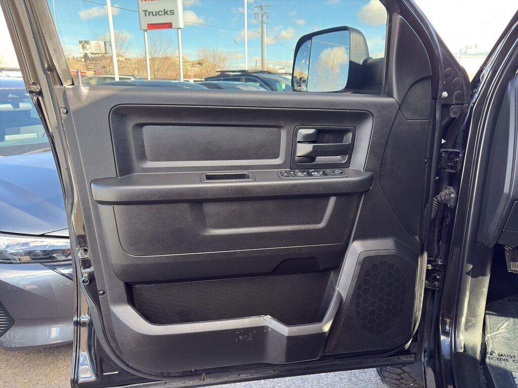 Quick Order Package 26J Express: Delete Spray in Bedliner; Front Fog Lamps; 6,900 lbs GVWR; Center Hub; Rear Floor Mats; Front Floor Mats; Body Color Front Fascia; Body Color Grille; Carpet Floor Covering; Body Color Rear Bumper with Step Pads; Ram 1500 Express,Express Value Package,Trailer Tow Mirrors and Brake Group: Trailer Brake Control; Add Class IV Receiver Hitch; Power Black Trailer Tow Mirrors,Quick Order Package 22J Express: Center Hub; Delete Spray in Bedliner; Rear Floor Mats; Front Floor Mats; Front Fog Lamps; Body Color Front Fascia; Body Color Grille; Carpet Floor Covering; Body Color Rear Bumper with Step Pads; Ram 1500 Express,20" X 9" Aluminum Chrome Clad Wheels,Uconnect 3 Radio with 5" Display,Anti-Spin Differential Rear Axle,32 Gallon Fuel Tank,Add Class IV Receiver Hitch,Cloth 40/20/40 Bench Seat,Trailer Brake Control,Brilliant Black Crystal P,SiriusXM Satellite Radio,Remote Keyless Entry with All-Secure,Power Black Trailer Tow Mirrors,Uconnect w/Bluetooth handsfree wireless device connectivity,Cloth front seat upholstery,Driver seat with 4-way directional controls,Front passenger seat with 4-way directional controls,Manual tilting steering wheel,Cloth rear seat upholstery,Manual climate control,Rear under seat climate control ducts,Rear console climate control ducts,Keyfob trunk control,Cruise control with steering wheel mounted controls,Mechanical,Heated driver and passenger side door mirrors,Auto-locking doors,Valet key,Exterior temperature display,5 inch primary display,Primary monitor touchscreen,Bluetooth wireless audio streaming,External memory control,ParkView rear mounted camera,Brake assist system,Sentry Key immobilizer,Electronic stability control system,Hill start assist,Front fog lights,Manual rear child safety door locks,6 airbags,Driver front impact airbag,Seat mounted side impact driver airbag,Curtain first and second-row overhead airbags,Passenger front impact airbag,Seat mounted side impact front passenger airbag,Airbag occupancy sensor,Reflector headlights,Part-time 4WD,HEMI 5.7L V-8 variable valve control, regular unleaded, engine with cylinder deactivation and 395HP,HEMI 5.7L V-8,TorqueFlite 8-speed automatic,Selectable mode transmission,Transmission electronic control,Automatic,Trailer brake controller,Trailer sway control,Active grille shutters,Pearlcoat paint,Chrome-clad wheel covers,Manual extendable trailer mirrors,20 x 9-inch front and rear aluminum wheels,P275/60SR20 AS OWL 636 RPM front and rear tires