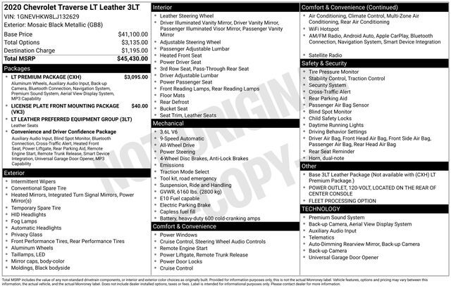 2020 Chevrolet Traverse 3LT Mosaic Black Metallic AWD 9-Speed Automatic 3.6L V6 SIDI VVT