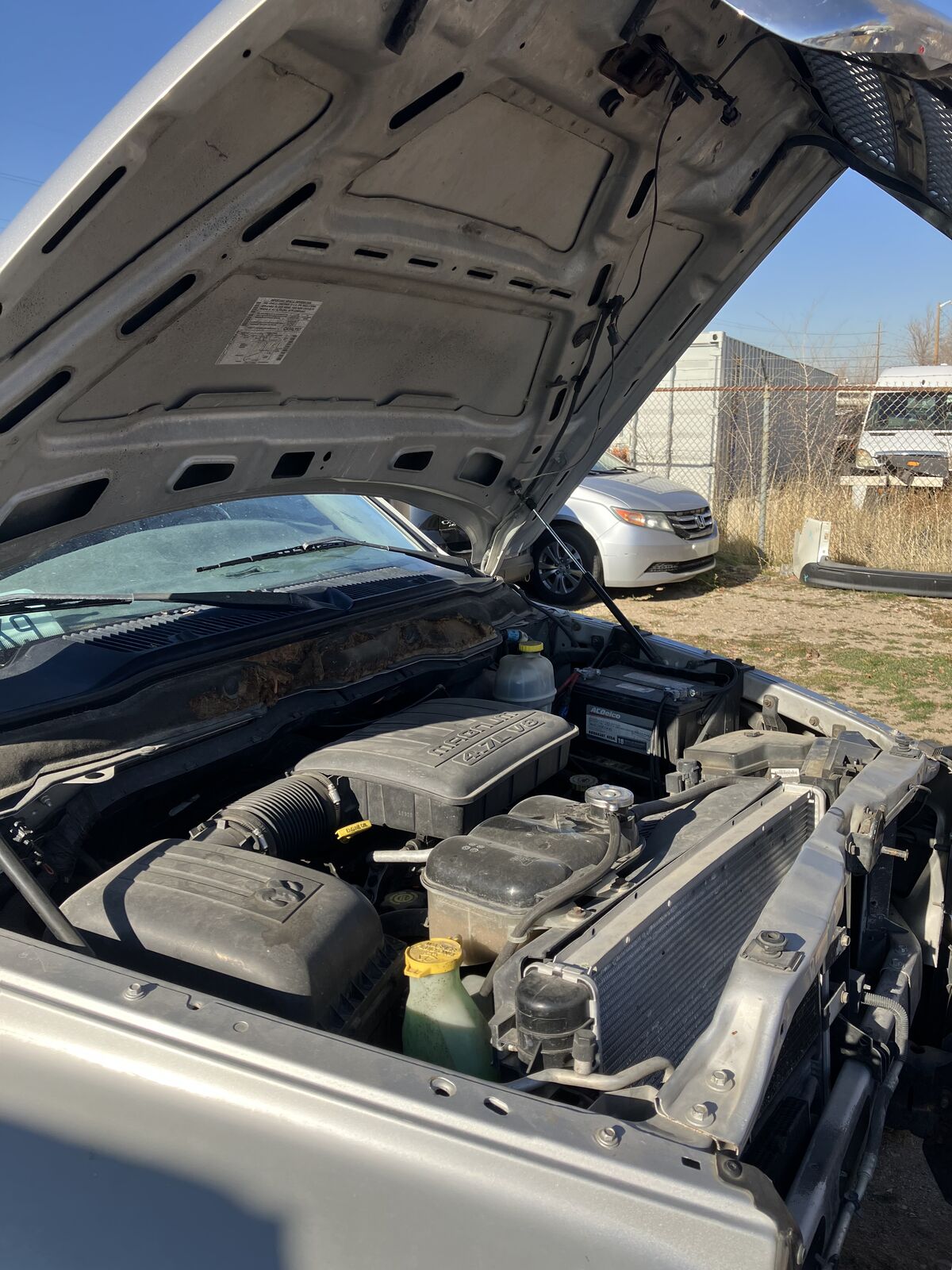 Check engine light is on, I don't know what the code is. I suspect the alternator is at end of life.