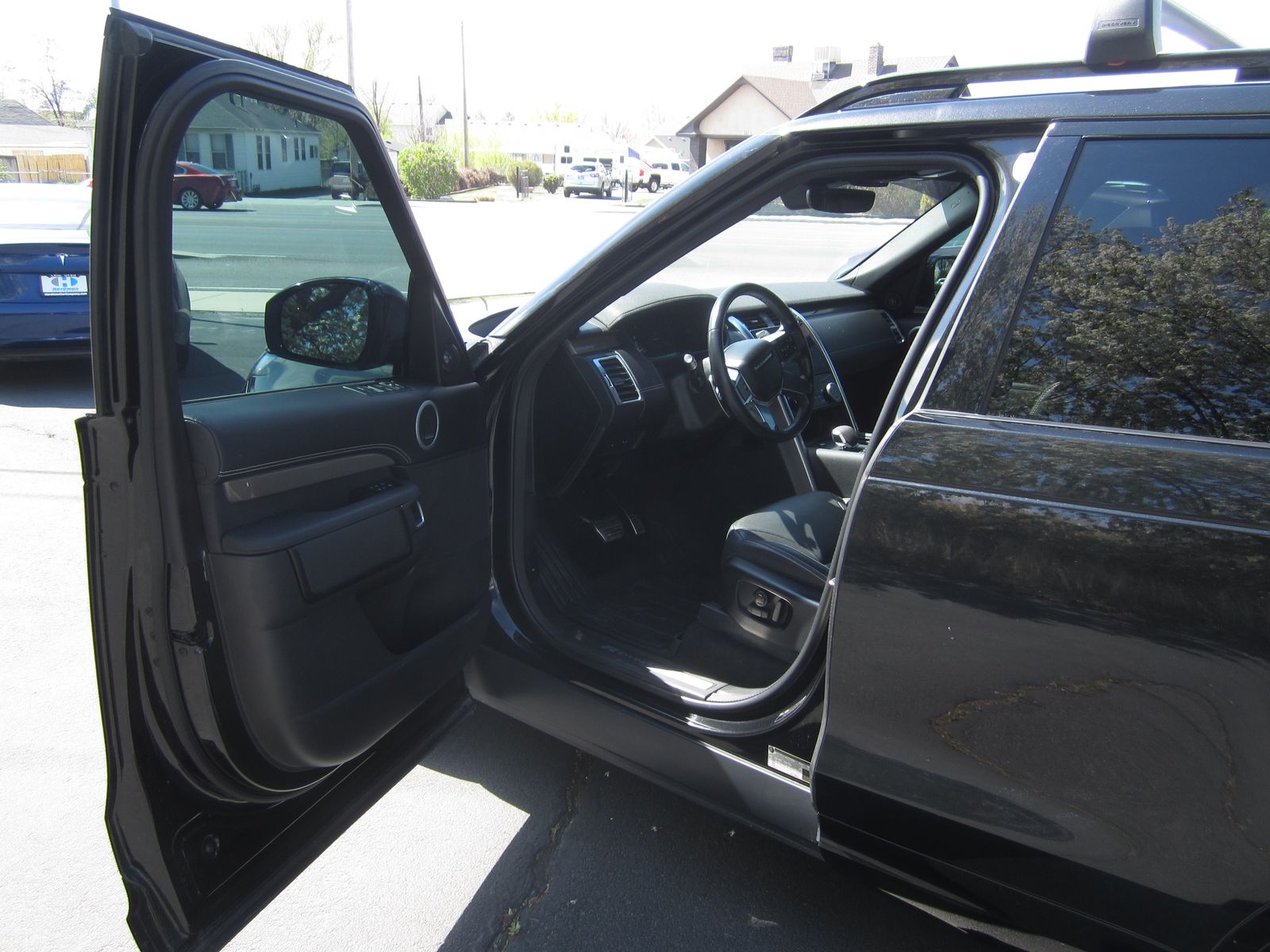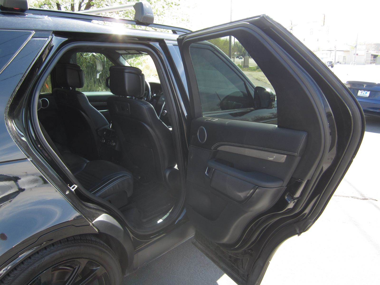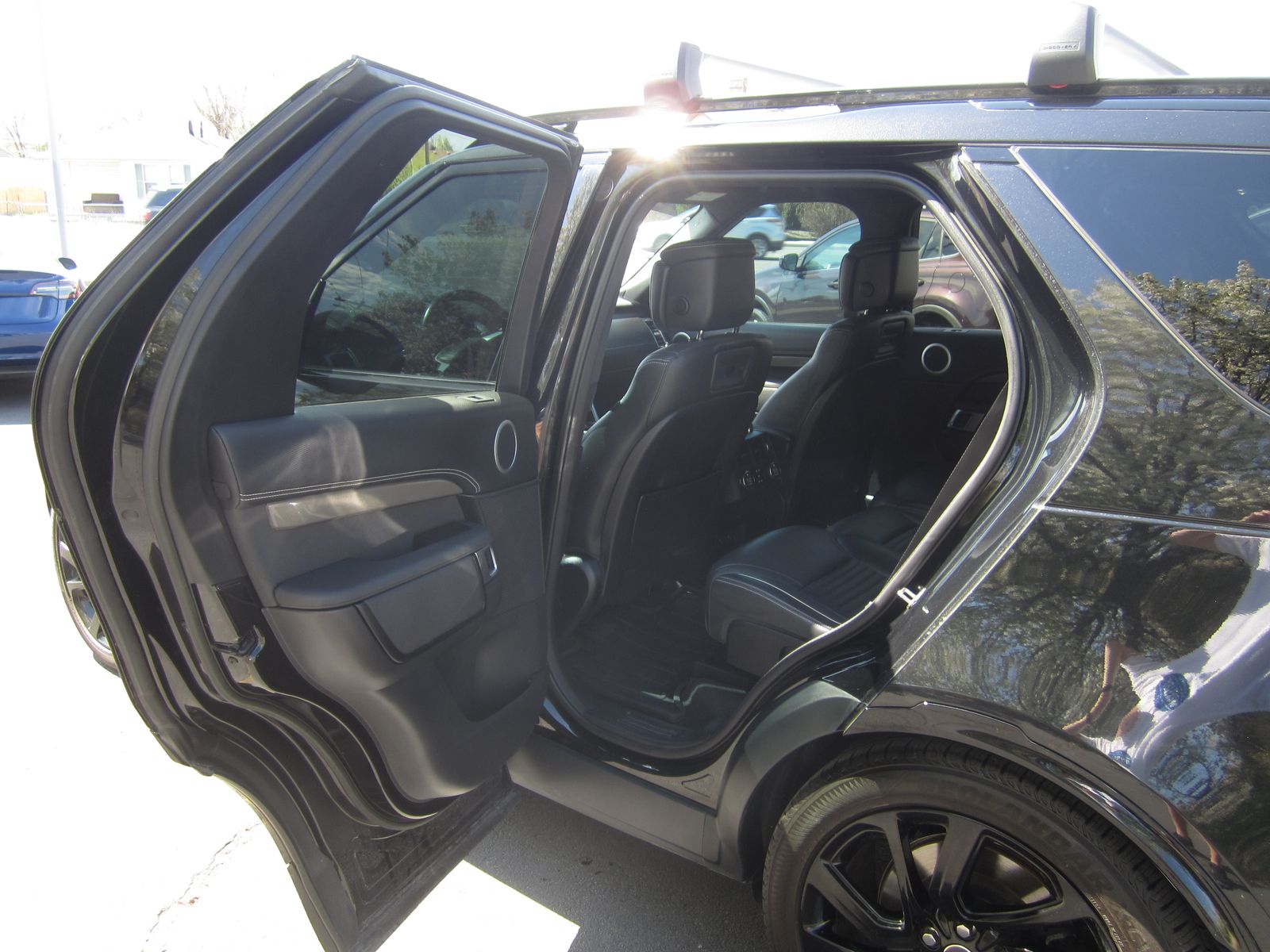 Santorini Black Metallic 2023 Land Rover Discovery Metropolitan Edition 4WD ZF 8-Speed Automatic 3.0L I6 15 Speakers, 20-Way Heated & Cooled Electric Memory Front Seats, 3.55 Axle Ratio, 3rd row seats: split-bench, 4-Wheel Disc Brakes, ABS brakes, AM/FM radio: SiriusXM, Auto tilt-away steering wheel, Auto-dimming door mirrors, Auto-dimming Rear-View mirror, Automatic temperature control, Electronic Stability Control, Exterior Parking Camera Rear, Front dual zone A/C, Front fog lights, Fully automatic headlights, Garage door transmitter: HomeLink, Heads-Up Display, Heated door mirrors, Heated steering wheel, Illuminated entry, Leather Shift Knob, Leather steering wheel, Memory seat, Navigation system: Connected Navigation PIVI Pro, Outside temperature display, Power door mirrors, Power Liftgate, Power moonroof, Power passenger seat, Radio data system, Radio: Meridian Surround Sound System (700 Watts), Rain sensing wipers, Rear dual zone A/C, Rear fog lights, Rear window wiper, Remote keyless entry, Security system, Split folding rear seat, Spoiler, Steering wheel memory, Steering wheel mounted audio controls, Traction control, Turn signal indicator mirrors, Windsor Leather Seat Trim.