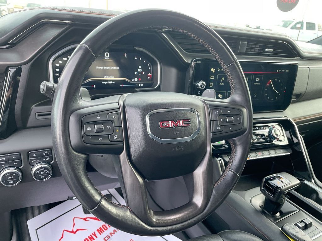 AT4 Preferred Package: Power Sliding Rear Window with Rear Defogger; Universal Home Remote; Adaptive Cruise Control,AT4 Premium Package: Off-Road High Clearance Step,Sierra Safety Plus Package: Rear Cross Traffic Braking; HD Surround Vision; Trailer Side Blind Zone Alert; Rear Pedestrian Alert; Ultrasonic Front and Rear Park Assist; Trailer Camera Provisions,Preferred Equipment Group 4SB: Perforated Leather Front Seat Trim; 3.23 Rear Axle Ratio; Electric Rear-Window Defogger; Theft Deterrent System (unauthorized Entry); Black Chrome Header and Grille Insert Bars; Front Rain-Sensing Wipers; Heavy-Duty Air Filter; Skid Plates; Compass; Heated Steering Wheel; 120-Volt Instrument Panel Power Outlet; Wireless Charging; Front Bucket Seats; Front Premium Floor Liners with Removable Carpet Insert; 10-Speed Automatic Transmission; Colour-Keyed Carpeting Floor Covering; OnStar and GMC Connected Services Capable; Heated 2nd Row Outboard Seats; Power Front Passenger Windows with Express Up/down; Power Rear Windows with Express Down; Integrated Trailer Brake Controller; Power Rake and Telescoping Steering Column; Keyless Open and Start; Perimeter Lighting; Push Button Start; HD Rear Vision Camera; LED Cargo Area Lighting; Remote Vehicle Starter System; In-Vehicle Trailering App; 7,100 lbs (3,221 Kgs) GVWR; Hill Descent Control; Floor-Mounted Centre Console; Duramax 3.0L Turbo-Diesel I6 Engine; GMC Pro Safety; Electrical Steering Column Lock; Trailering Package; 2 USB Ports; 2 Charge/data USB Ports Inside Centre Console; Off-Road Suspension; Steering Wheel Audio Controls; 2 type-C Charge-Only Rear USB Ports; GMC Connected Access Capable; Premium GMC Infotainment Audio System Radio; 2-Speed Transfer Case; Deep-Tinted Glass; Spray-On Pickup Bed Liner with AT4 Logo; Red Recovery Hooks; Hitch Guidance with Hitch View; Power Front Windows with Driver Express Up/down; Wi-Fi Hotspot Capable; Rear Wheelhouse Liners; Auto-Locking Rear Differential; Power Door Locks,Off-Road High Clearance Step,REV Hard-Folding Tonneau Cover,20" X 9" Machined Aluminum Wheels,Titanium Rush Metallic,Wheel Locks (set of 4),Apple CarPlay/Android Auto smart device wireless mirroring,Forward Collision Alert with Automatic Braking,Front Pedestrian Braking,Wi-Fi Hotspot capable mobile hotspot internet access,HD Rear Vision Camera w/Hitch View rear mounted camera,Lane Keep Assist with Lane Departure Warning,Rear Cross Traffic Braking collision mitigation,Adaptive cruise control with stop and go,Automatic Emergency Braking predictive brake assist system,Cruise control with steering wheel mounted controls,Integrated navigation system with voice activation,Keyfob remote start,Heated steering wheel,Heated rear seats,Leather front seat upholstery,Primary monitor touchscreen,Driver seat power reclining, lumbar support, cushion tilt, fore/aft control and height adjustable control,AutoTrac part and full-time 4WD,Duramax 3L I-6 diesel direct injection, DOHC, variable valve control, intercooled turbo, diesel, engine with 277HP,Duramax 3L I-6 DOHC,Front wireless smart device charging,Buckle to Drive restricted driving mode/alerts,Rear Pedestrian Alert rear pedestrian detection warning,Keyless Open/Keyless Start with hands-free access and push button start,Keyfob window control,HD Surround Vision aerial view camera,Push-button,Weight capacity alert,Bluetooth wireless audio streaming,Vehicle to trailer hitching assist,Gauge cluster display size: 12.30,Front mounted camera with washer,Right side camera,Left side camera,Trailer Side Blind Zone Alert blind spot warning,Following Distance Indicator,Trailer light test,Trailer light malfunction warning,Trailer theft alarm,Dual-zone front climate control,Voice-activated climate control,IntelliBeam auto high-beam headlights,Immobilizer,Bose speakers,Bluetooth handsfree wireless device connectivity,Trailer brake controller,Trailer Sway Control (TSC) trailer sway control,Vehicle and trailer reverse assist with visual graphic guidance only,Premium GMC Infotainment System external memory control,Internet radio capability