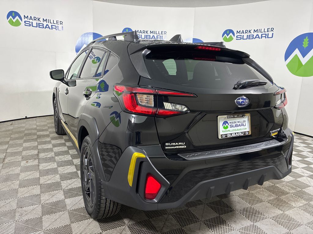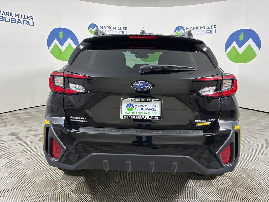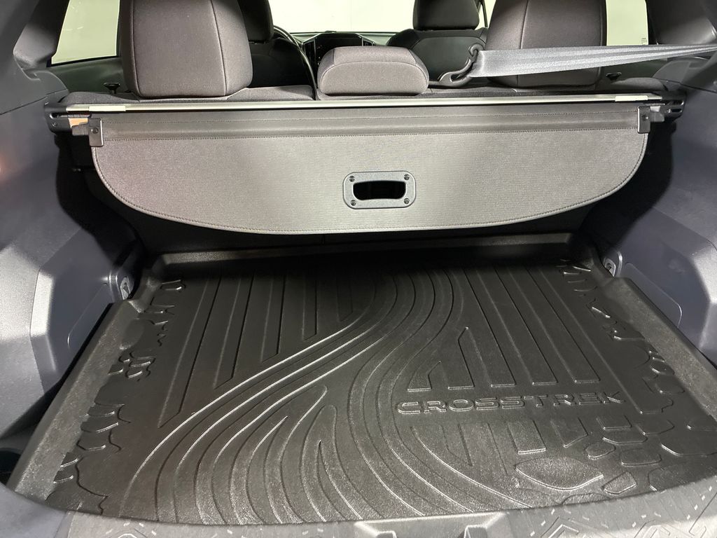 This 2025 Crystal Black Silica Subaru Crosstrek Sport AWD is well equipped and includes these features and benefits: Crosstrek Mirror Package (Auto-Dimming Exterior Mirror w/Approach Light and Auto-Dimming Mirror w/Compass & HomeLink), Standard Model, Subaru Certified Pre-Owned Certified, 4-Wheel Disc Brakes, 6 Speakers, ABS brakes, Air Conditioning, All-Weather Floor Liners, Alloy wheels, AM/FM radio: SiriusXM, Anti-whiplash front head restraints, Auto High-beam Headlights, Automatic temperature control, Brake assist, Bumpers: body-color, Driver door bin, Driver vanity mirror, Dual front impact airbags, Dual front side impact airbags, Electronic Stability Control, Emergency communication system, Exterior Parking Camera Rear, Four wheel independent suspension, Front anti-roll bar, Front Bucket Seats, Front Center Armrest, Front dual zone A/C, Front fog lights, Front reading lights, Fully automatic headlights, Heated door mirrors, Heated Front Bucket Seats, Heated front seats, Illuminated entry, Knee airbag, Leather Shift Knob, Leather steering wheel, Low tire pressure warning, Occupant sensing airbag, Outside temperature display, Overhead airbag, Overhead console, Panic alarm, Passenger door bin, Passenger vanity mirror, Power door mirrors, Power steering, Power windows, Radio data system, Radio: Subaru 11.6'' Multimedia Plus System, Rear anti-roll bar, Rear Bumper Cover, Rear seat center armrest, Rear window defroster, Rear window wiper, Remote keyless entry, Security system, Speed control, Speed-sensing steering, Split folding rear seat, Spoiler, Sport Cloth Upholstery, Steering wheel mounted audio controls, Tachometer, Telescoping steering wheel, Tilt steering wheel, Traction control, Trip computer, Turn signal indicator mirrors, Variably intermittent wipers, and Wheels: 18'' x 7.0'' J Dark Gray Aluminum-Alloy.