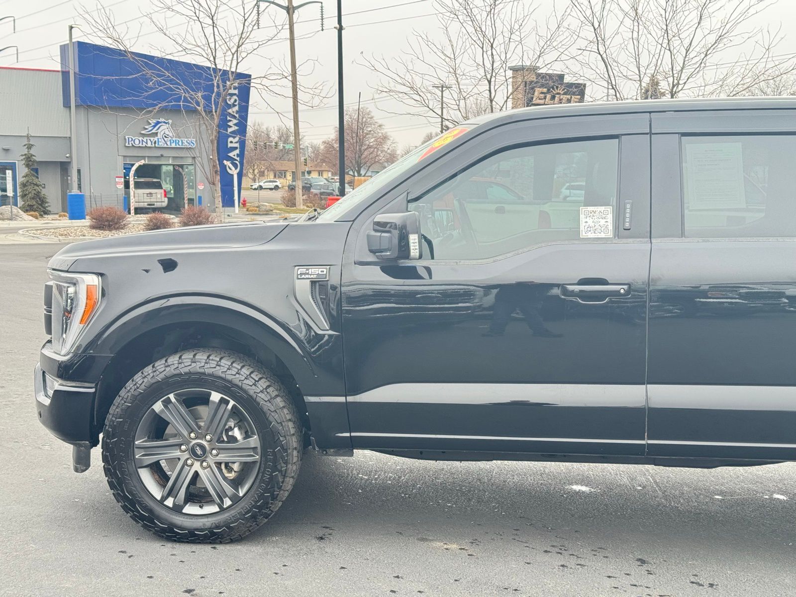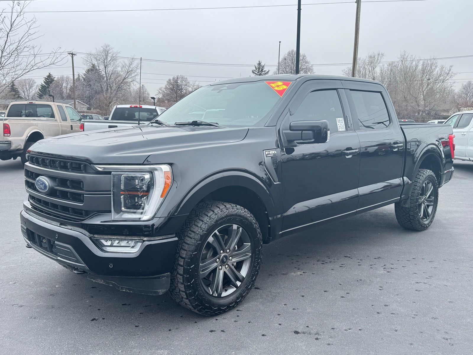 Black 2023 Ford F-150 Lariat 4D SuperCrew 2023 4WD, 2nd Row Heated Seats, ABS brakes, Accent-Color Angular Step Bars, Alloy wheels, Body-Color Front & Rear Bumpers, Box Side Decals, Chrome Single-Tip Exhaust, Class IV Trailer Hitch Receiver, Compass, Connected Built-In Navigation, Dark 2-Bar & 1 Minor Bar Style Grille, Electronic Stability Control, Equipment Group 502A High, Evasive Steering Assist, Ford Co-Pilot360 Assist 2.0, Front dual zone A/C, Heated door mirrors, Heated front seats, Illuminated entry, Integrated Trailer Brake Controller, Intelligent Adaptive Cruise Control w/Stop & Go, Intersection Assist, Lariat Sport Appearance Package, LED Projector w/Dynamic Bending Headlamps, Low tire pressure warning, Power Tilt/Telescoping Steering Column w/Memory, Pro Trailer Backup Assist & Pro Trailer Hitch Assist, Rain-Sensing Wipers, Remote keyless entry, Speed Sign Recognition, Traction control, Trailer Tow Package, Wheels: 20'' Chrome-Like PVD, Wireless Charging Pad. Lariat 10-Speed Automatic Ford 2.7L V6 EcoBoost F-150 4WD
