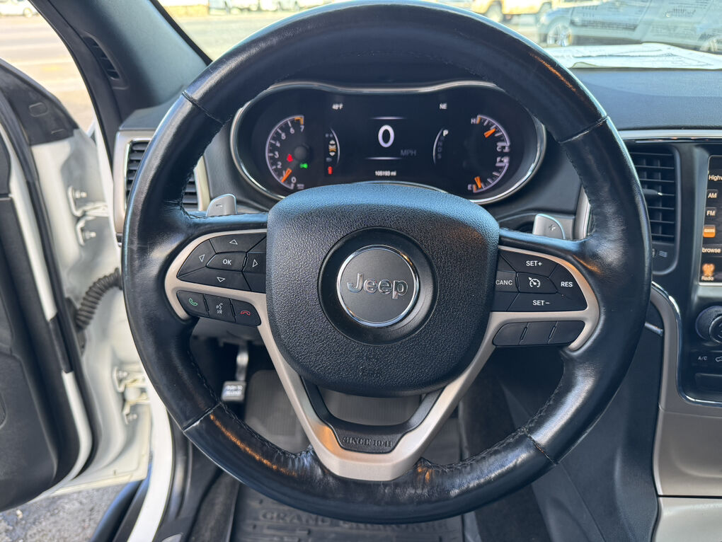 Ready to carry you on your next offroad adventure, or to carpool to drop the kiddos in style, this 2015 Jeep Grand Cherokee Limited is slick. Clean title and Carfax report in hand. Fresh out of Southern California. 2 owners since new. First owner had it for 3 years, the second owner for the remaining 6. Consistent maintenance with records on the Carfax report including tires, alignment, oil changes, mileage interval services and more. Great miles at only 105,192. Rolling on a 2.5” Eibach ALL-TERRAIN coil lift kit, with Method 17” wheels wrapped in very good Goodyear Wrangler AT/S 265/70R17 tires (32.5”). Steel rock slider running boards that look awesome and will perform if offroad. Tinted windows all around. While this Jeep no-doubt has offroad capabilities, it has never seen such. It was tricked out, and lived on the asphalt in Southern Cali. The white exterior is in excellent condition with no damage of any kind. Suspension, steering and brake components are all good. The 3.6L V6 runs excellent and the automatic transmission shifts like new. Park distance sensors front and rear, as well as backup camera. Full Magnaflow exhaust (with cats) and MOPAR Cold Air Intake. Factory chrome door handles, front grill inserts and more as part of the LIMITED trim package.
