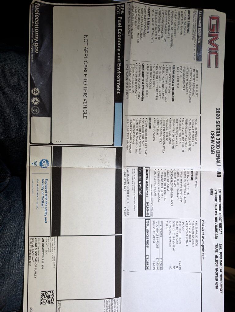 Fully Loaded! GMC Tailgate, Heads-Up Display, Heated & Ventilated Leather Seats, Heated Rear Seats, Heated Steering Wheel, 360° Cameras, Lane Departure Warning, 360° Blind Zone Sensors, Forward Collision Alert, Rear Mirror Video Camera, Trailering Package, Trailering Mirrors, Spray,-On Bed Liner, Hard Top Tonneau Cover. Only 1 owner. Clean Title. Small scrape on front right of bumper and small crack in driver's side mirror plastic (see pictures) Otherwise in perfect condition.