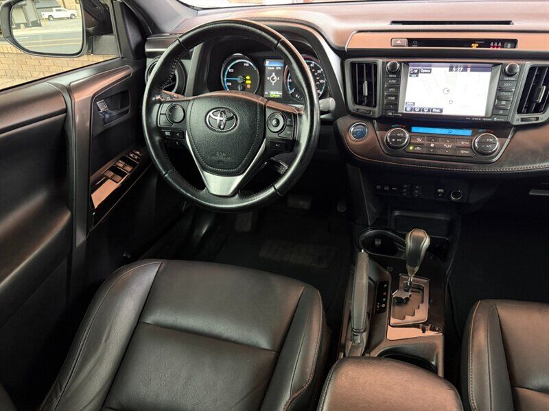 INSTALLED FEATURES: Air filtration, Front air conditioning: automatic climate control, Front air conditioning zones: dual, Rear vents: second row, Airbag deactivation: occupant sensing passenger, Front airbags: dual, Knee airbags: driver, Seat cushion airbags: passenger front, Side airbags: front, Side curtain airbags: front / rear, Antenna type: diversity / mast, Auxiliary audio input: Bluetooth / iPod/iPhone / jack / USB, In-Dash CD: MP3 Playback / single disc, Radio: AM/FM / HD radio / touch screen display / voice operated, Radio data system, Satellite radio: SiriusXM, Speed sensitive volume control, Total speakers: 6, ABS: 4-wheel, Braking assist, Electronic brakeforce distribution, Front brake type: ventilated disc, Power brakes, Rear brake type: disc, Regenerative braking system, Armrests: rear center with cupholders / rear folding, Dash trim: leatherette, Door sill trim: scuff plate, Door trim: leatherette, Floor mat material: carpet, Floor material: carpet, Floor mats: front / rear, Shift knob trim: alloy, Steering wheel trim: leather, Adaptive cruise control, Assist handle: front / rear, Cargo area light, Center console: front console with armrest and storage, Cupholders: front / rear, Multi-function remote: panic alarm / proximity entry system / trunk release, One-touch windows: 1, Overhead console: front, Power outlet(s): 12V rear / two 12V front, Power steering: variable/speed-proportional, Power windows: lockout button, Push-button start, Reading lights: front / rear, Rearview mirror: manual day/night, Steering wheel: tilt and telescopic, Steering wheel mounted controls: audio / multi-function / phone / voice control, Storage: accessory hook / cargo tie-down anchors and hooks / door pockets / front seatback / grocery bag holder / sunglasses holder, Vanity mirrors: dual illuminating, Door handle color: body-color, Exhaust tip color: stainless steel, Front bumper color: body-color, Grille color: black, Mirror color: black, Rear bumper color: body-color, Rear spoiler: roofline, Rear spoiler color: body-color, Rear trunk/liftgate: liftgate / power operated, Rocker panel color: black, Window trim: chrome, Infotainment: Entune, Infotainment screen size: 6.1 in., Clock, Compass, Digital odometer, External temperature display, Fuel economy display: MPG / range, Instrument cluster screen size: 4.2 in., Multi-function display, Trip odometer, Warnings and reminders: coolant temperature warning / lamp failure / low fuel level / low oil pressure / maintenance due, Daytime running lights: LED, Exterior entry lights: approach lamps, Front fog lights, Headlights: auto delay off / auto high beam dimmer / auto on/off / LED, Taillights: LED, Side mirror adjustments: manual folding / power, Side mirrors: heated / integrated turn signals, 4WD type: on demand, Auto start/stop, Battery: heavy duty, Battery saver, Drive mode selector, Electric motor battery type: nickel-metal hydride, Starter type: motor/generator, Moonroof / Sunroof: anti-trapping / one-touch open/close / power glass / sliding sunshade / tilt/slide, Roof rails: silver, Automatic emergency braking: front / front pedestrian, Blind spot safety: sensor/alert, Camera system: rearview, Child safety door locks, Child seat anchors: LATCH system, Cross traffic alert: rear, Crumple zones: front, Impact absorbing seats: dual front, Lane deviation sensors, Lane keeping assist, Pre-collision warning system: audible warning / pedestrian detection / visual warning, Rearview monitor: in dash, Safety brake pedal system, Emergency locking retractors: front / rear, Front seatbelts: 3-point, Rear seatbelts: 3-point, Seatbelt force limiters: front, Seatbelt pretensioners: front, Seatbelt warning sensor: front, Driver seat: heated, Driver seat power adjustments: 8 / height / lumbar / reclining, Front headrests: 2 / adjustable, Front seat type: sport bucket, Passenger seat: heated, Passenger seat manual adjustments: 4 / reclining, Rear headrests: 3 / adjustable, Rear seat folding: flat / split, Rear seat manual adjustments: reclining, Rear seat type: 60-40 split bench, Upholstery: leatherette, Anti-theft system: vehicle immobilizer, Power door locks: anti-lockout / auto-locking, Hill holder control, Stability control, Traction control, Front shock type: gas, Front spring type: coil, Front stabilizer bar: diameter 25 mm, Front struts: MacPherson, Front suspension classification: independent, Front suspension type: lower control arms, Rear shock type: gas, Rear spring type: coil, Rear stabilizer bar: diameter 23 mm, Rear suspension classification: independent, Rear suspension type: multi-link, Electronic messaging assistance: voice operated / with read function, Hands-free phone call integration: voice operated, Navigation app: Scout GPS Link, Navigation data: real time traffic, Wireless data link: Bluetooth, Spare tire mount location: inside, Spare tire size: temporary, Spare wheel type: steel, Tire Pressure Monitoring System, Wheel spokes: 5, Wheels: aluminum alloy, Front wipers: variable intermittent, Laminated glass: acoustic windshield, Liftgate window: fixed, Power windows: safety reverse, Rear privacy glass, Rear wiper: intermittent / with washer, Window defogger: rear