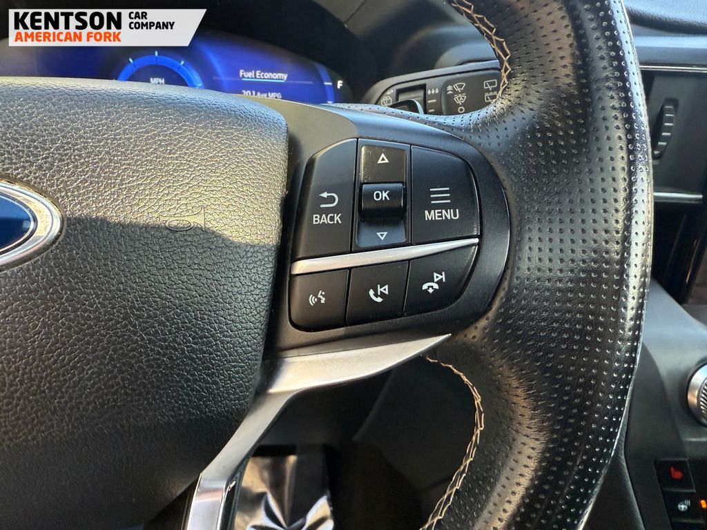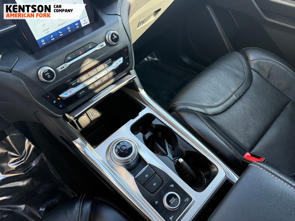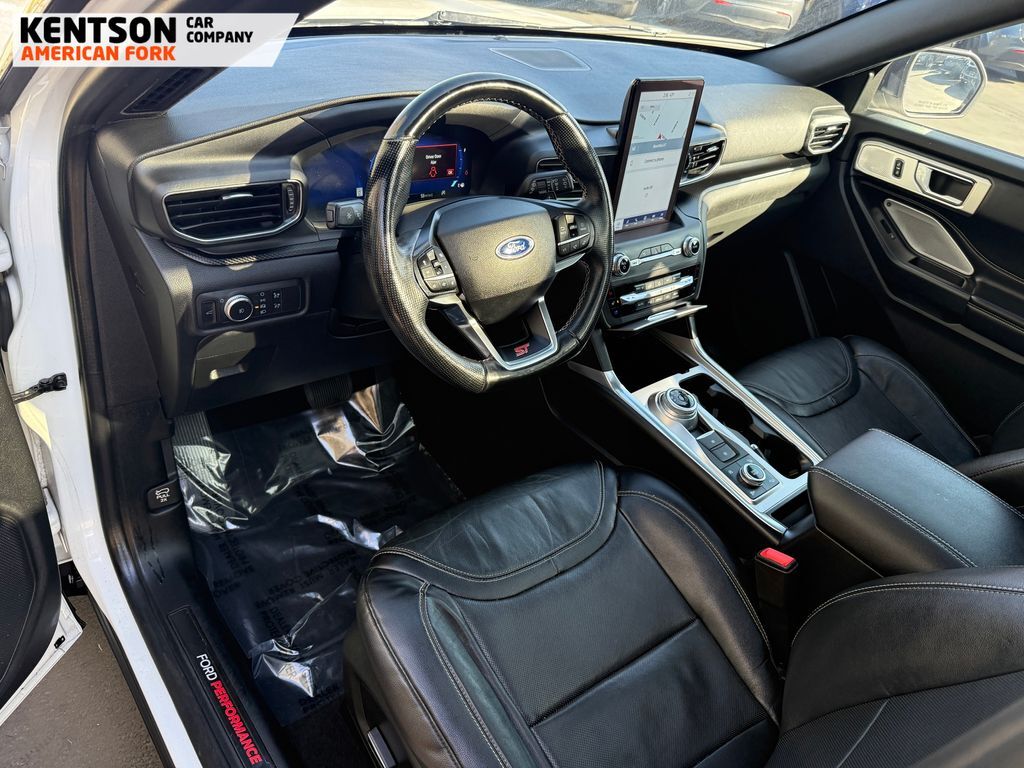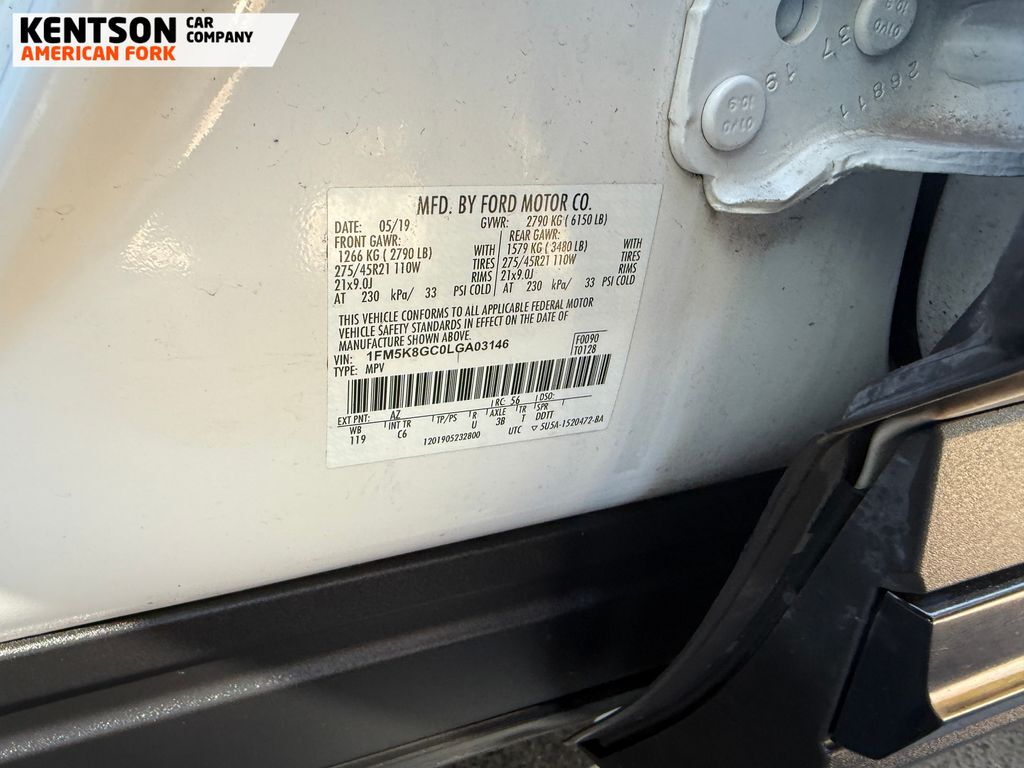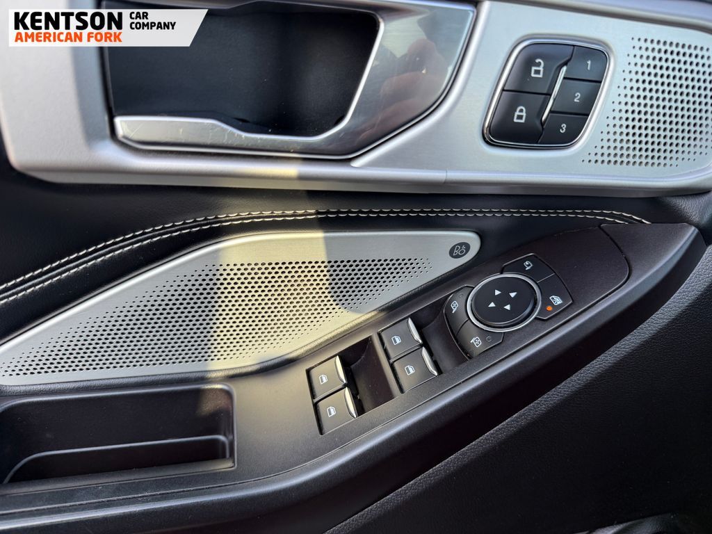 Equipment Group 400A, Premium Technology Package (10.1'' LCD Capacitive Portrait Touchscreen, 2 Additional Speakers, and Leather Htd/Ventilated Sport Captain's Chairs), ST High-Performance Pack (Wheels: 21'' Aluminum), 12 Speakers, 20'' Machined Aluminum w/Painted Pockets Wheels, 3.58 Non-Limited-Slip Rear Axle Ratio, 3rd row seats: bench, 4-Wheel Disc Brakes, ABS brakes, Air Conditioning, Alloy wheels, AM/FM radio: SiriusXM, Auto High-beam Headlights, Auto-dimming door mirrors, Auto-dimming Rear-View mirror, Automatic temperature control, Brake assist, Bumpers: body-color, Compass, Delay-off headlights, Driver door bin, Driver vanity mirror, Dual front impact airbags, Dual front side impact airbags, Electronic Stability Control, Emergency communication system: SYNC 3 911 Assist, Exterior Parking Camera Rear, FordPass Connect, Four wheel independent suspension, Front & Second Row Floor Liners, Front anti-roll bar, Front Bucket Seats, Front Center Armrest, Front dual zone A/C, Front fog lights, Front reading lights, Fully automatic headlights, Garage door transmitter: HomeLink, Heated door mirrors, Heated front seats, Heated rear seats, Heated steering wheel, Illuminated entry, Knee airbag, Leather steering wheel, Low tire pressure warning, Memory seat, Navigation System, Occupant sensing airbag, Outside temperature display, Overhead airbag, Overhead console, Panic alarm, Passenger door bin, Passenger vanity mirror, Performance Front & Rear Brakes, Power door mirrors, Power driver seat, Power Liftgate, Power passenger seat, Power steering, Power windows, Radio data system, Radio: B&O Sound System by Bang & Olufsen, Rain sensing wipers, Rear air conditioning, Rear anti-roll bar, Rear reading lights, Rear window defroster, Rear window wiper, Remote keyless entry, Roof rack: rails only, Security system, Speed control, Speed-sensing steering, Speed-Sensitive Wipers, Split folding rear seat, Spoiler, Sport steering wheel, Steering wheel memory, Steering wheel mounted audio controls, SYNC 3 Communications & Entertainment System, SYNC 3/Apple CarPlay/Android Auto, Tachometer, Telescoping steering wheel, Tilt steering wheel, Traction control, Trip computer, Turn signal indicator mirrors, Twin Panel Moonroof, Variably intermittent wipers, Ventilated front seats, and Voice-Activated Touchscreen Navigation System.